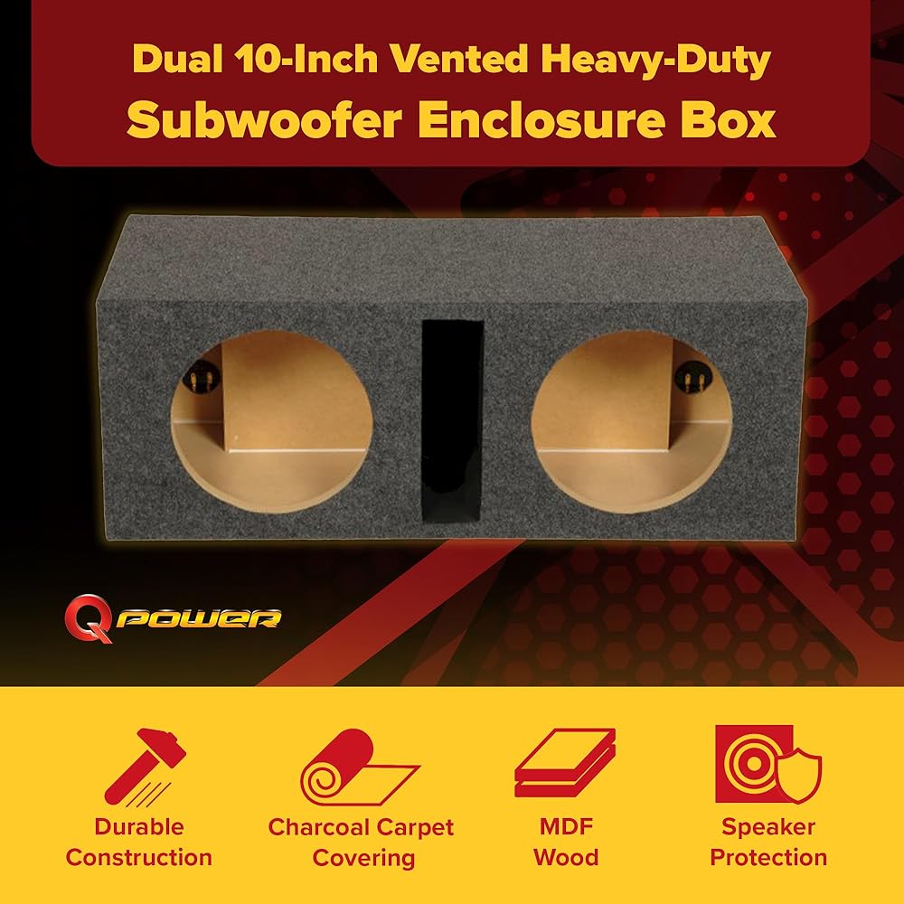 علبة مضخم صوت Q Power HD210 ذات فتحات تهوية مزدوجة مقاس 10 بوصات شديدة التحمل مع حاجز أمامي مقاس 1 بوصة
