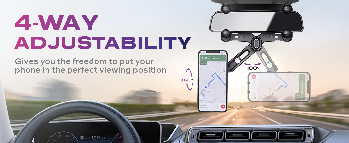 يعمل حامل الهاتف بمرآة الرؤية الخلفية للسيارات مع أي هاتف، بغض النظر عن العلامة التجارية أو الطراز، لذلك يمكنك ضبطه بسهولة حسب احتياجاتك. إنه حل متعدد الاستخدامات يلائم الوضع الرأسي والأفقي، بحيث يمكنك استخدامه بأي طريقة تريدها.