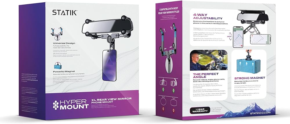 مع حامل الهاتف بمرآة الرؤية الخلفية Statik Hypermount XL، أبقِ جهازك في الأفق واستمتع بأفضل رؤية لهاتفك دون النظر بعيدًا عن الطريق. مثالي لاتباع تعليمات نظام تحديد المواقع العالمي (GPS)، أو إجراء مكالمات بدون استخدام اليدين، أو التقاط الصور ومقاطع الفيديو.