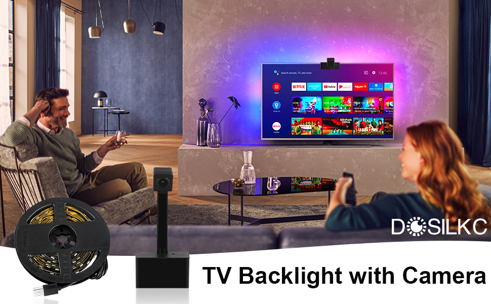 إضاءة خلفية LED للتلفزيون Dosilkc مع كاميرا، وحدة تحكم مزامنة شاشة كاميرا واي فاي 1080 بكسل مع تطبيق الهاتف، مصابيح LED RGBIC للتلفزيون مع الفيديو، إيقاع الموسيقى، وضع المشهد، أضواء شريط LED 16.4 قدم لأجهزة التلفاز 55-70 بوصة