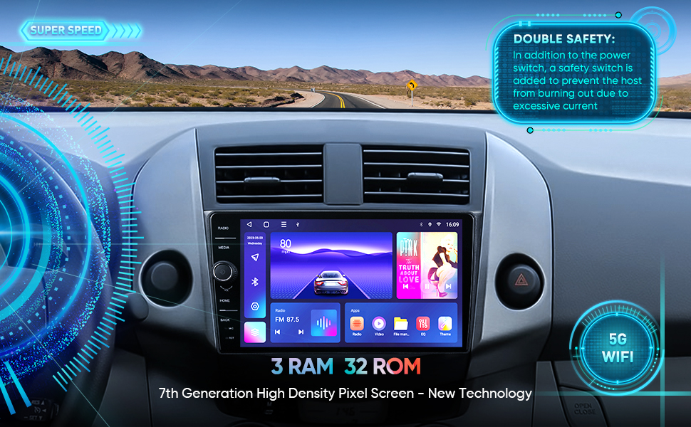 【5G WIFI&8Core لاستبدال راديو Toyota RAV4 】(2.4aHZ&5aHZ) سرعة شبكة WiFi أسرع، وتشغيل دقيق في الوقت الحقيقي لمعلومات الطريق للأمام، لضمان بيئة شبكة تطبيق سلسة؛ تعمل وحدة المعالجة المركزية المضيفة 8Core بسلاسة، وتعد وحدة معالجة الرسومات ثنائية النواة رائعة لبناء وعرض بيئات ثلاثية الأبعاد، وهي عبارة عن شاشة QLED فائقة الدقة تمت ترقيتها والتي تمنحك تجربة بصرية رسومية عالية الدقة.