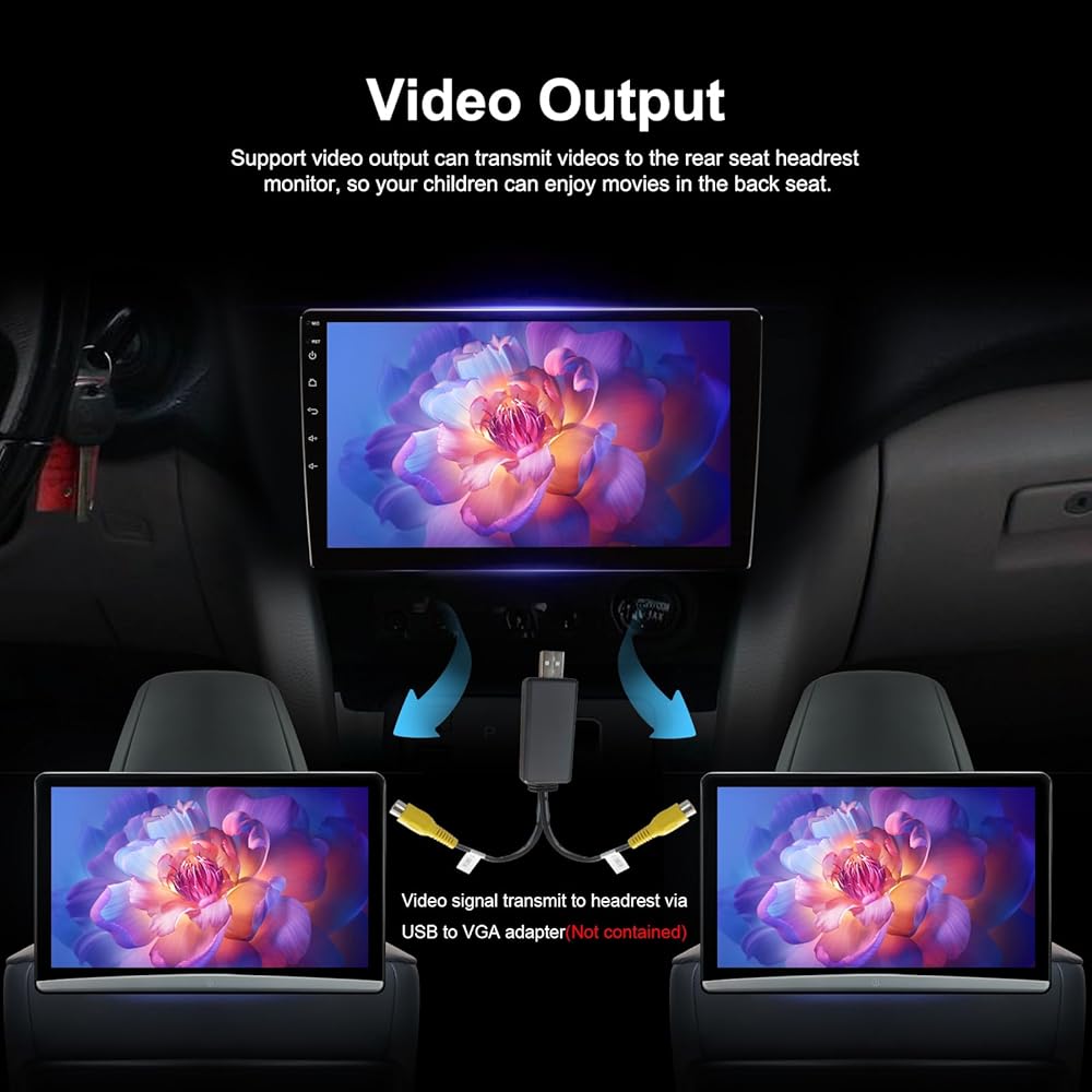 وظيفة إخراج USB إلى RCA لصوت السيارة: يمكنك الاستمتاع بفوائد تشغيل مقاطع الفيديو بشكل مستقل على شاشات متعددة في نفس الوقت، مما يوفر الترفيه للسائقين والركاب.