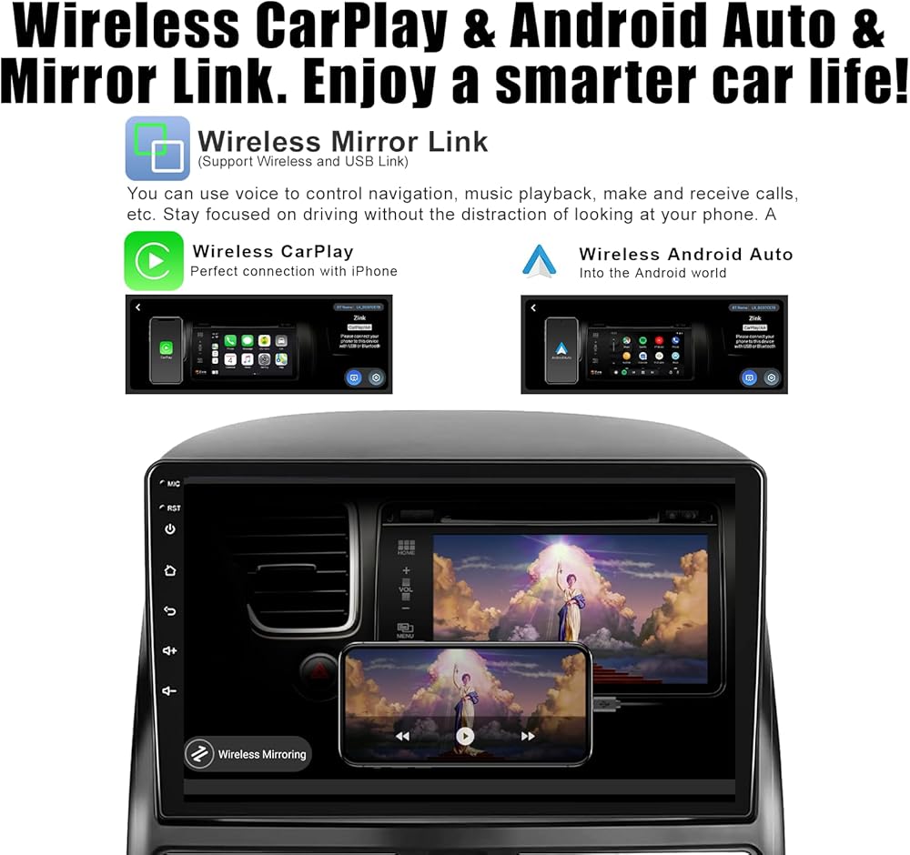 【CarPlay اللاسلكي وصوت السيارة Android Auto مع التحكم الصوتي】يدعم صوت السيارة الذي يعمل باللمس مع تشغيل السيارة المدمج وAndroid Auto التنقل وإجراء المكالمات والاستماع إلى الموسيقى وإرسال واستقبال الرسائل. استخدم صوتك لإيقاظ Siri أو Google Assistant. حرر يديك وكن رفيقك الأكثر أمانًا على الطريق. بالإضافة إلى ذلك، فهو يدعم أيضًا Mirror Link اللاسلكي/السلكي، والذي يمكنه عرض شاشة الهاتف المحمول على الجهاز المثبت على السيارة، مما يتيح لك الاستمتاع بمزيد من المرح.