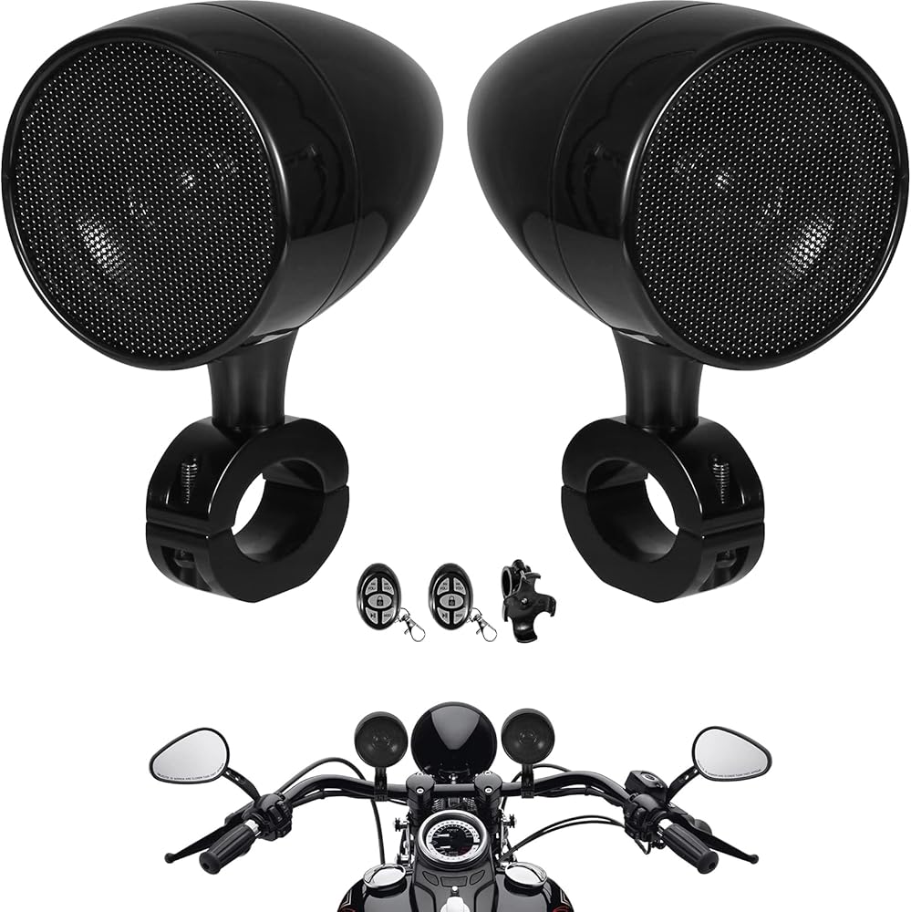 OXMART قطعتان من مكبرات صوت بلوتوث للدراجات النارية مع USB عالي الطاقة وجهاز تحكم عن بعد، مكبرات صوت بلوتوث للدراجات النارية مقاس 3 بوصات مقاومة للماء رائعة للمركبات ATV، دراجة سكوتر، دراجة نارية بمقود بقطر 1.0"-1.3"