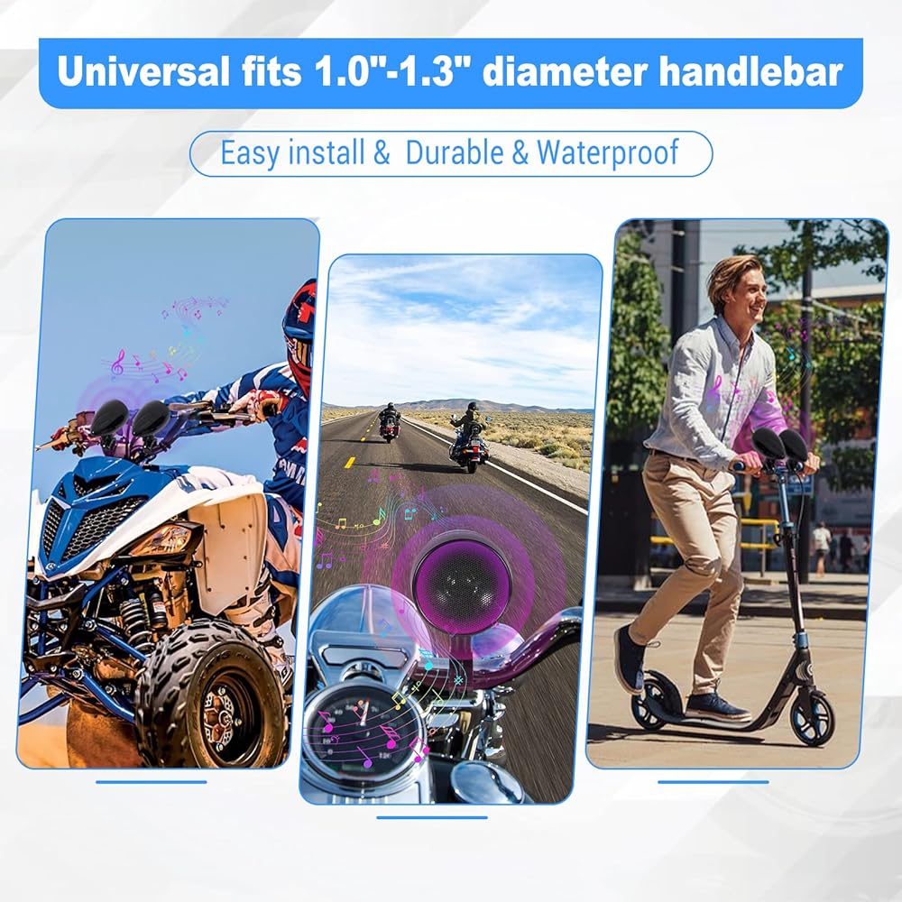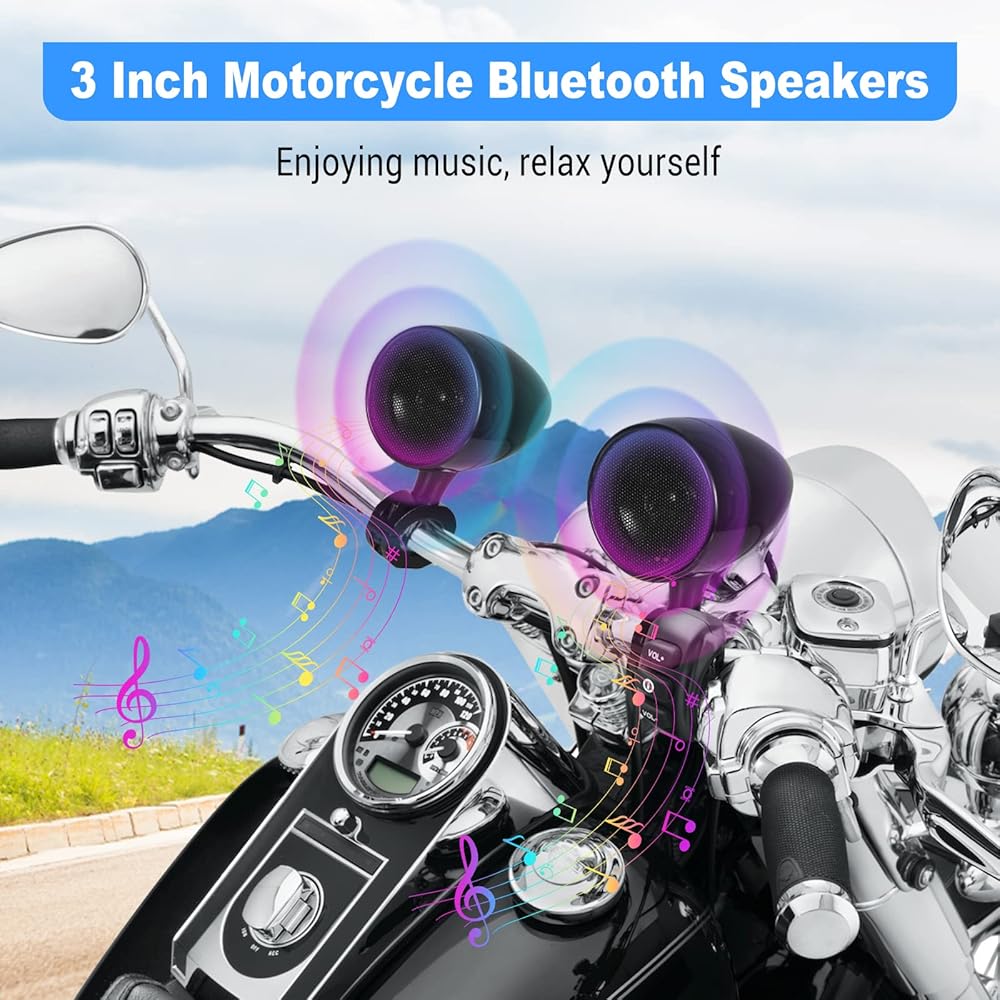 【صوت عالي الجودة】يأتي مكبر الصوت للدراجات النارية بتقنية البلوتوث من OXMART مع مكبري صوت كاملي النطاق عاليي الطاقة مقاس 3 بوصات، يمكنك الاستمتاع بصوت عالي الجودة وجودة صوت لا تفقد فقدانها وصوت محيطي استيريو، مما يتيح لك الاستمتاع بمتعة الاستماع إلى الموسيقى .