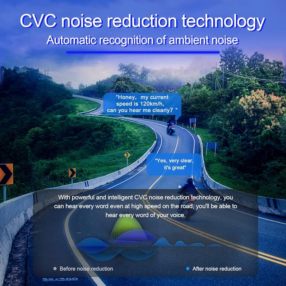 [تقليل ضوضاء سي في سي]: مع تقنية الحد من الضوضاء سي في سي الذكية والمتقدمة، يمكن لسماعة الرأس بلوتوث في 7 القضاء على الصدى والضوضاء المحيطة للمكالمة، حتى تتمكن من سماع كل كلمة بوضوح حتى بسرعة عالية على الطريق.