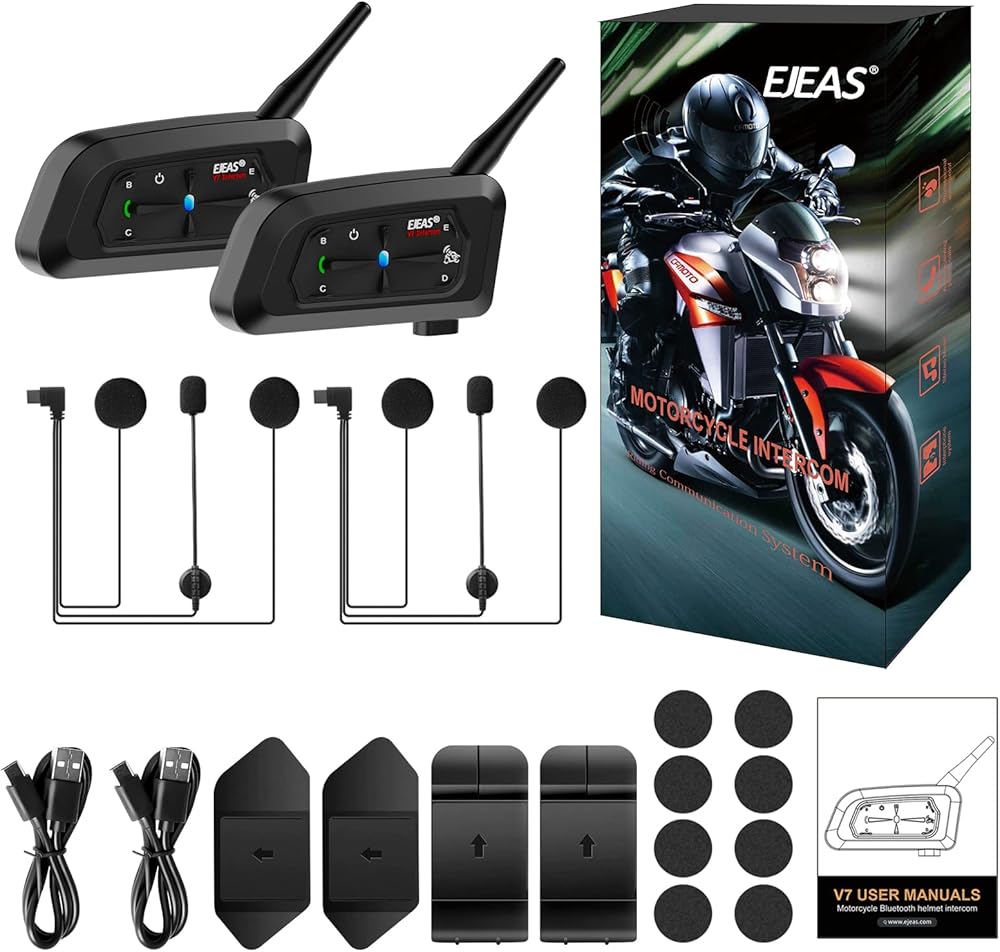 ايجيس سماعة راس بلوتوث للدراجات النارية من قطعتين في 7، نظام اتصال مطور لراكبي الدراجات النارية مع تقليل الضوضاء سي في سي واتصال هاتفين ذكيين (صوت ثلاثي الابعاد / مقاوم للماء / الرد التلقائي)