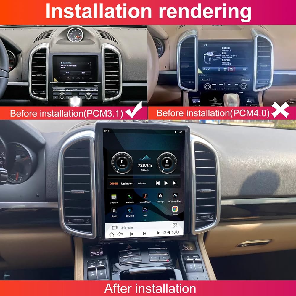 • 【ستيريو راديو السيارة لبورشه كايين PCM3.1】راديو السيارة الذي يعمل بنظام أندرويد هذا مناسب لبورشه كايين PCM3.1 2011-2018. نظام تشغيل Android 11 مطور + وحدة معالجة مركزية 8 النواة + ذاكرة وصول عشوائي 4 جيجا + ذاكرة تخزين داخلية سعة 64 جيجا بايت مع تحسين الطلاقة والتوافق والخصوصية. مجهزة بشاشة تعمل باللمس مقاس 10.4 بوصة، يمكنك التحكم بشكل أفضل في هذا الجهاز. حجم قياسي 100%، لا حاجة لشراء ملحقات إضافية، فقط اتبع تعليمات التثبيت لتجعل سيارتك تبدو جديدة.
