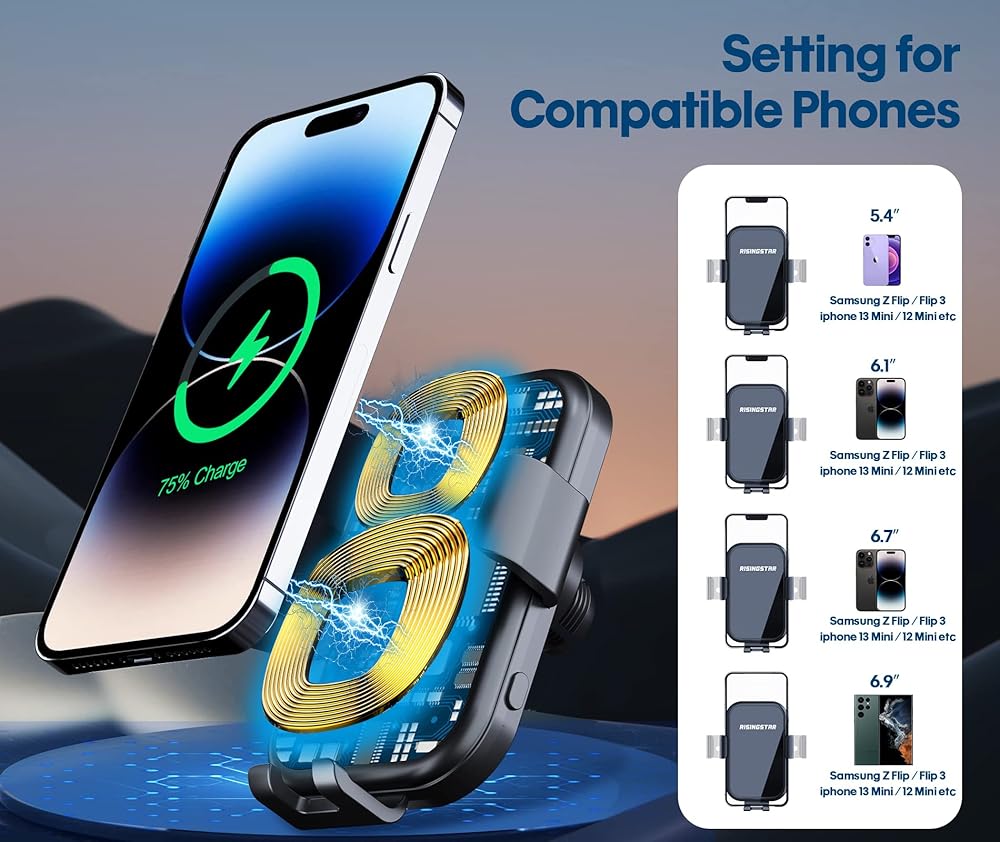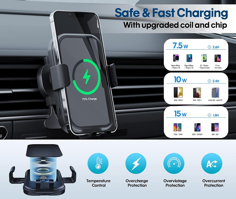 【شحن فعال، حامل الهاتف الخلوي الخاص بنا في السيارة ملف مزدوج مدمج، 15 وات شحن فائق السرعة، لديه أحدث مستشعر التكنولوجيا، فقط ضع الهاتف في السيارة بعد التشغيل، وسوف يتعرف بذكاء على هاتفك والشحن السريع تلقائيًا.