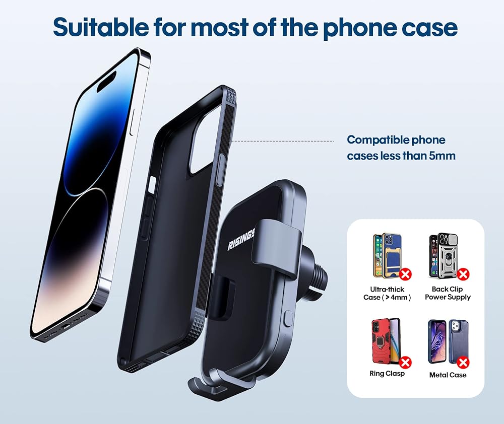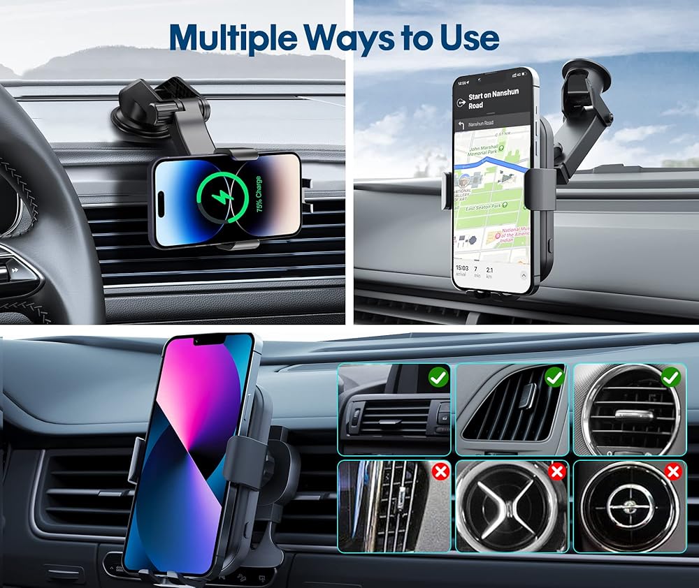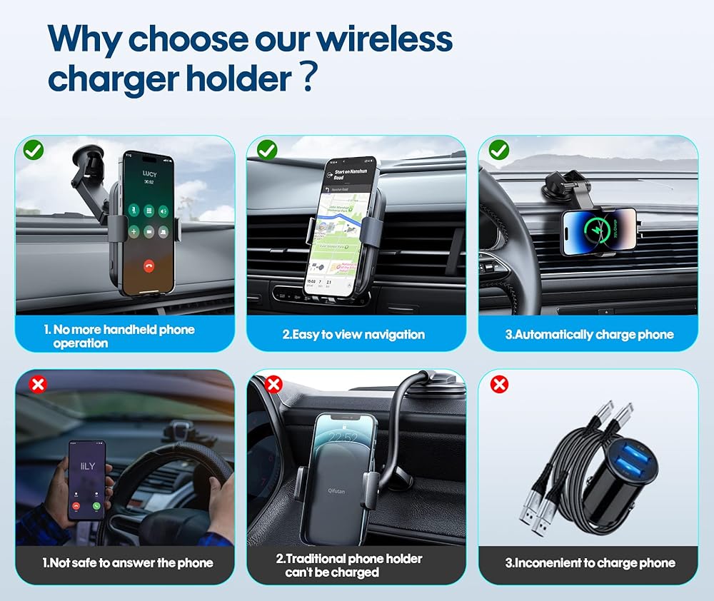 【زاوية عرض ثابتة ومرنة】تصميم 2 في 1 يجمع بين الشاحن اللاسلكي وحامل السيارة، يوفر شحن سريع لهاتفك ويوفر لك من العبث مع الكابلات والأغطية أثناء القيادة. يدعم الشاحن اللاسلكي المثبت للسيارة الشحن من خلال جرابات الهاتف حتى سمك 4 مم.