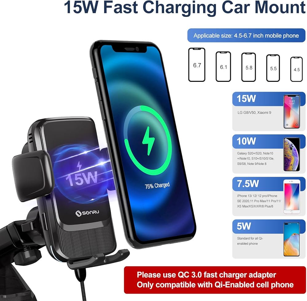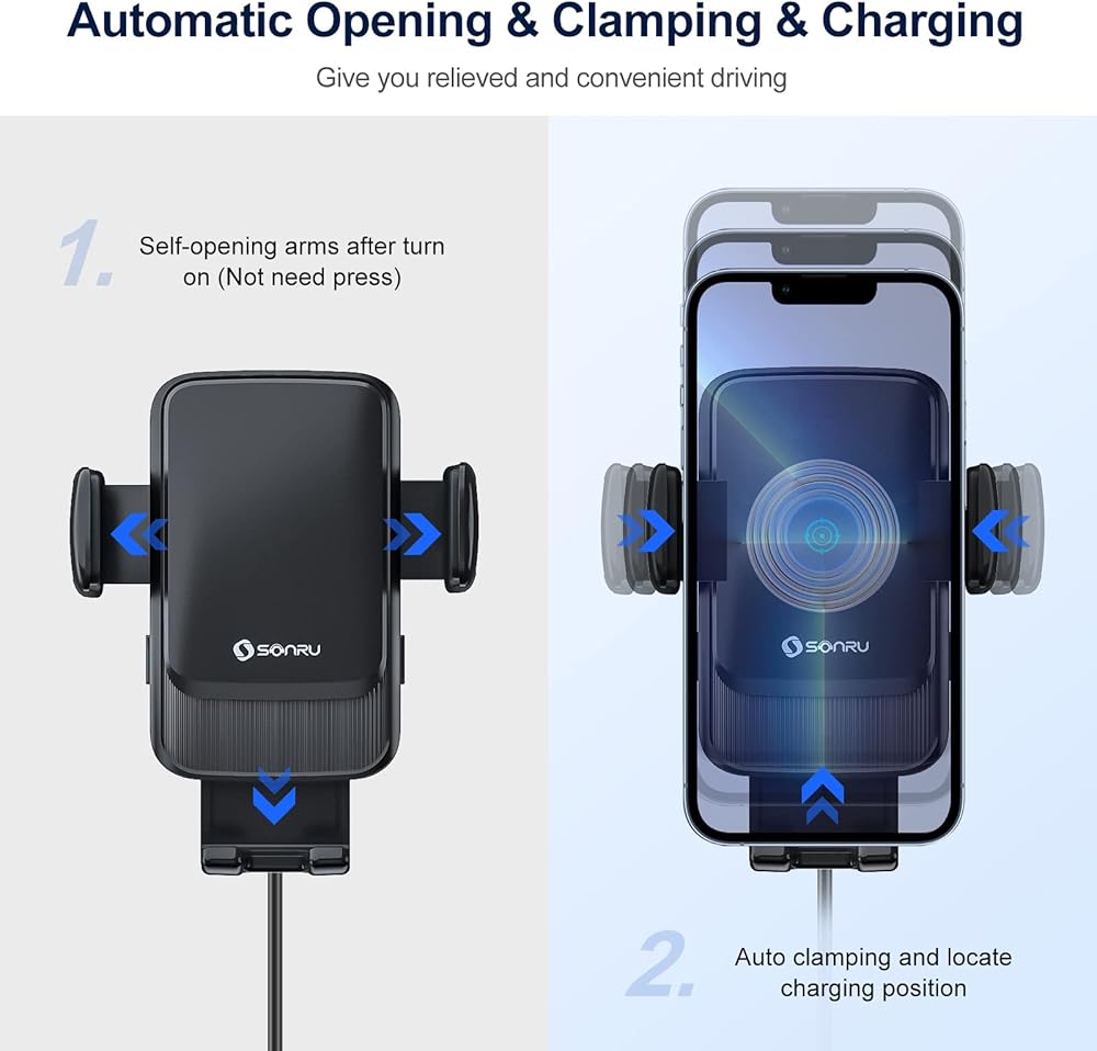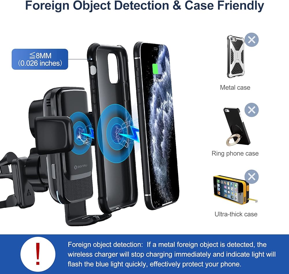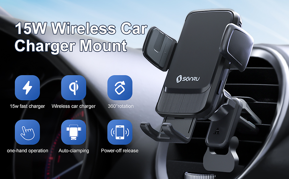 حامل شاحن سيارة لاسلكي من Sonru ، حامل هاتف مزود بفتحة تهوية تلقائية