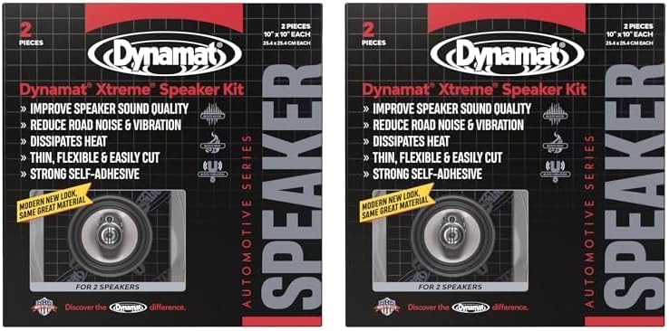 • محتويات العلبة: تحتوي مجموعة مكبرات الصوت Dynamat Xtreme على قطعتين مقاس 10 × 10 بوصات من Dynamat Xtreme لاستخدامهما عند تركيب مكبر الصوت الخاص بك