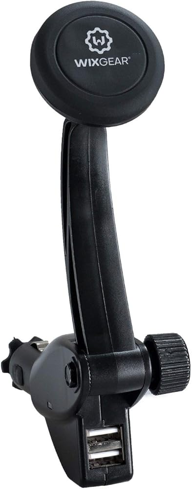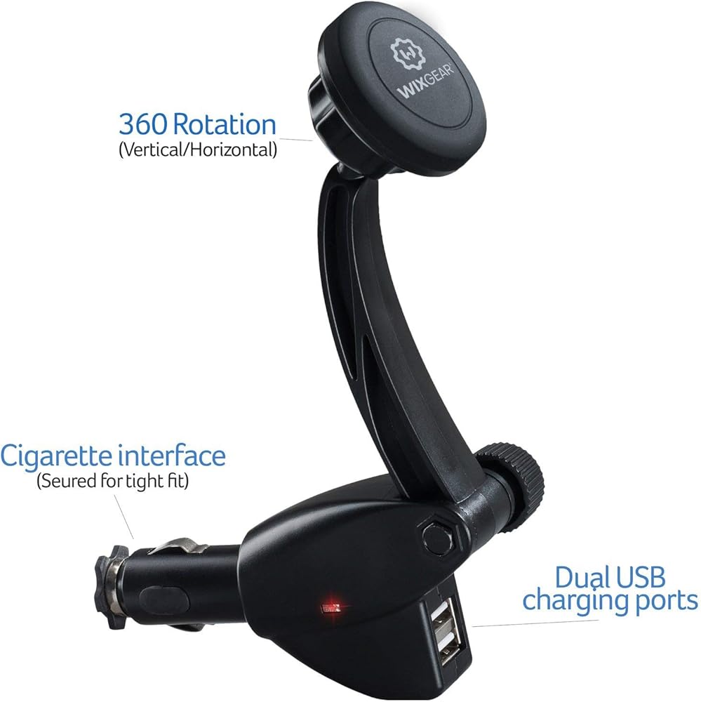 شاحن حامل للسيارة WixGear، حامل مقبس شاحن السيارة المغناطيسي العالمي، مع شاحن USB مزدوج، للهواتف المحمولة والأجهزة اللوحية الصغيرة مع تقنية Swift-Snap السريعة، حامل الهاتف الخلوي المغناطيسي