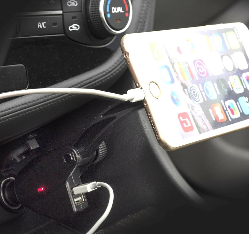 • حامل مغناطيسي مع شاحن: حامل مغناطيسي مع منافذ شحن USB مزدوجة: 2 منافذ شحن USB (DC5V 3A)، والتي يمكن إدخالها في مقبس شاحن السيارة للشحن أثناء تثبيت الهاتف على الحامل. بقاعدة متينة ورأس مغناطيسي قوي لحمل الهواتف الذكية.