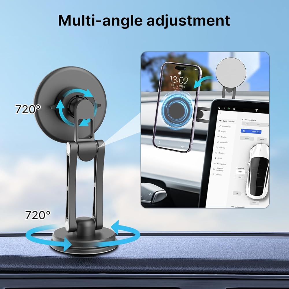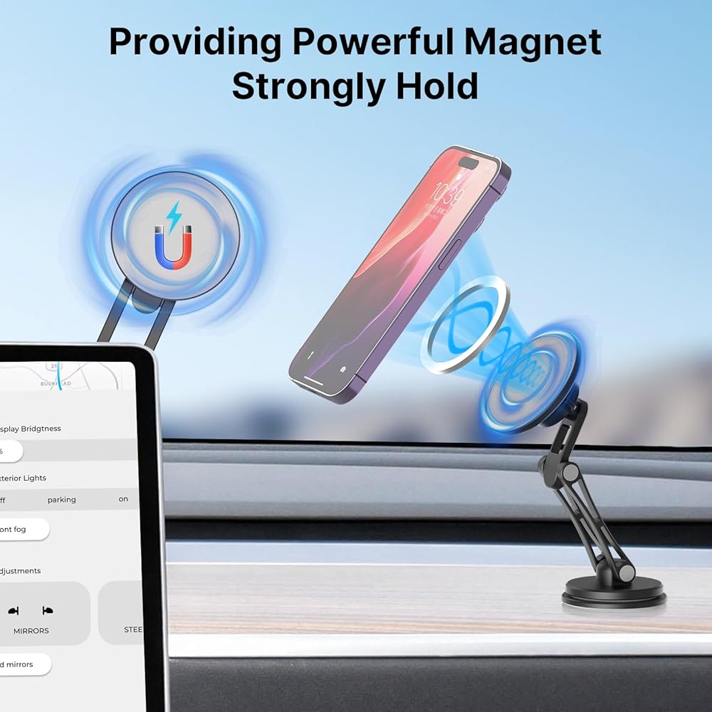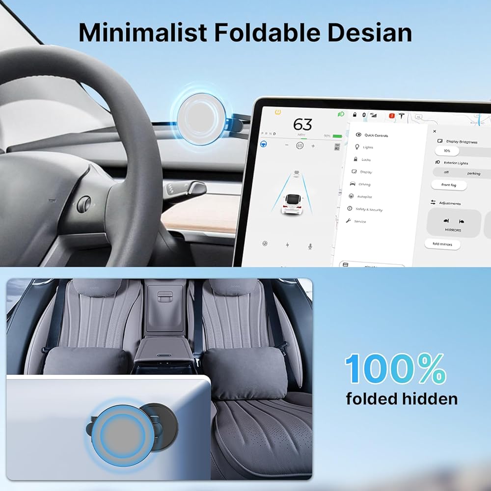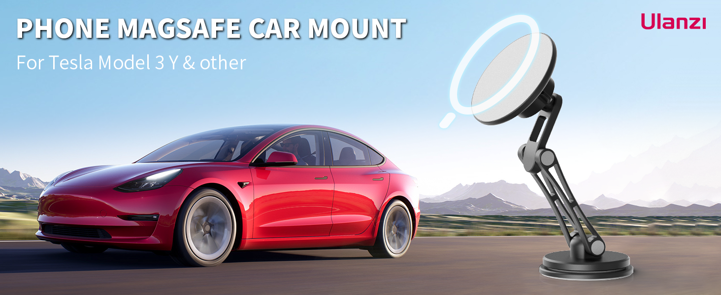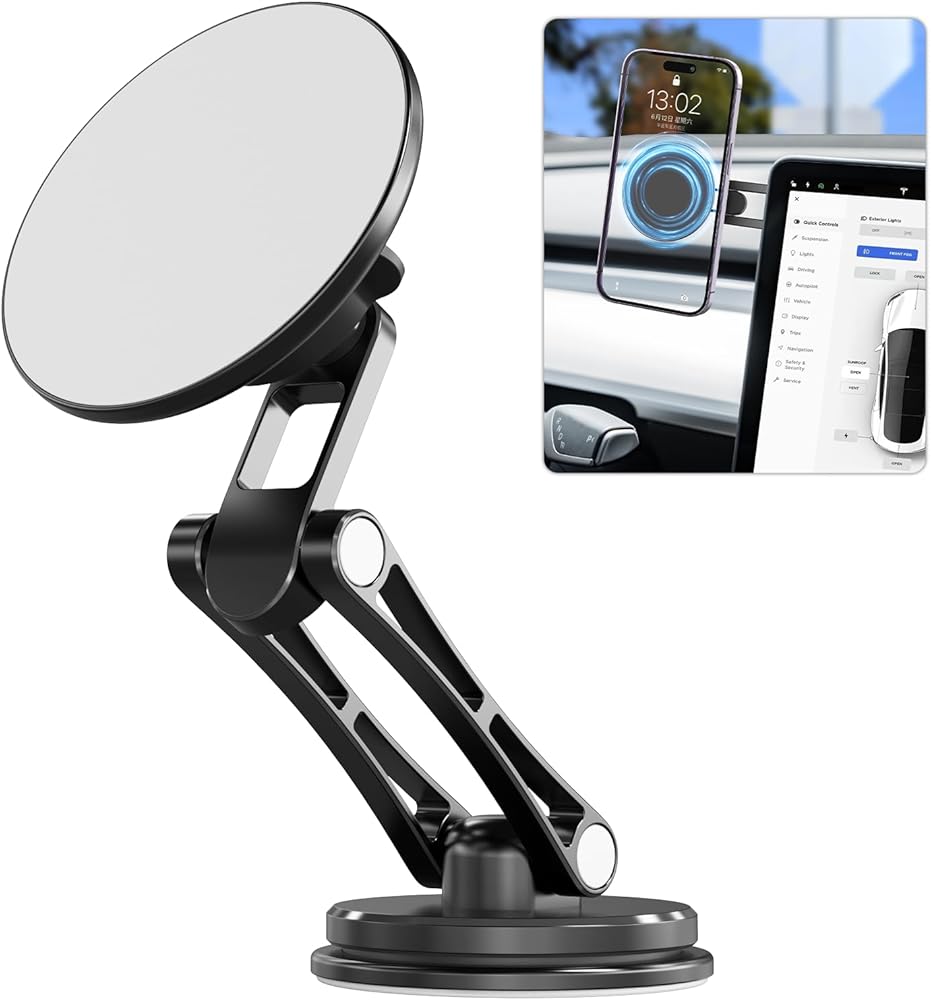 حامل موبايل مغناطيسي قوي من يولانزي، حامل سيارة ماج سيف لسيارة تيسلا موديل 3 موديل Y، حامل موبايل مخفي قابل للطي من الالومنيوم لايفون 14 13 12 برو ماكس بلس ميني وحافظة ماج سيف