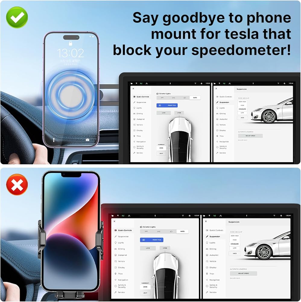 بالنسبة لملحقات تيسلا موديل 3/Y/X/S، تم تصميم حامل السيارة ماج سيف هذا خصيصًا لطراز تيسلا 3/Y/X/S، والذي يمكن أن يجلب لك تجربة قيادة مركزة وممتازة. كما يمكن أن يتناسب حامل الهاتف تيسلا مع جميع السيارات الأخرى. سهل التركيب ويمكن تركيبه تقريبًا في أي مكان