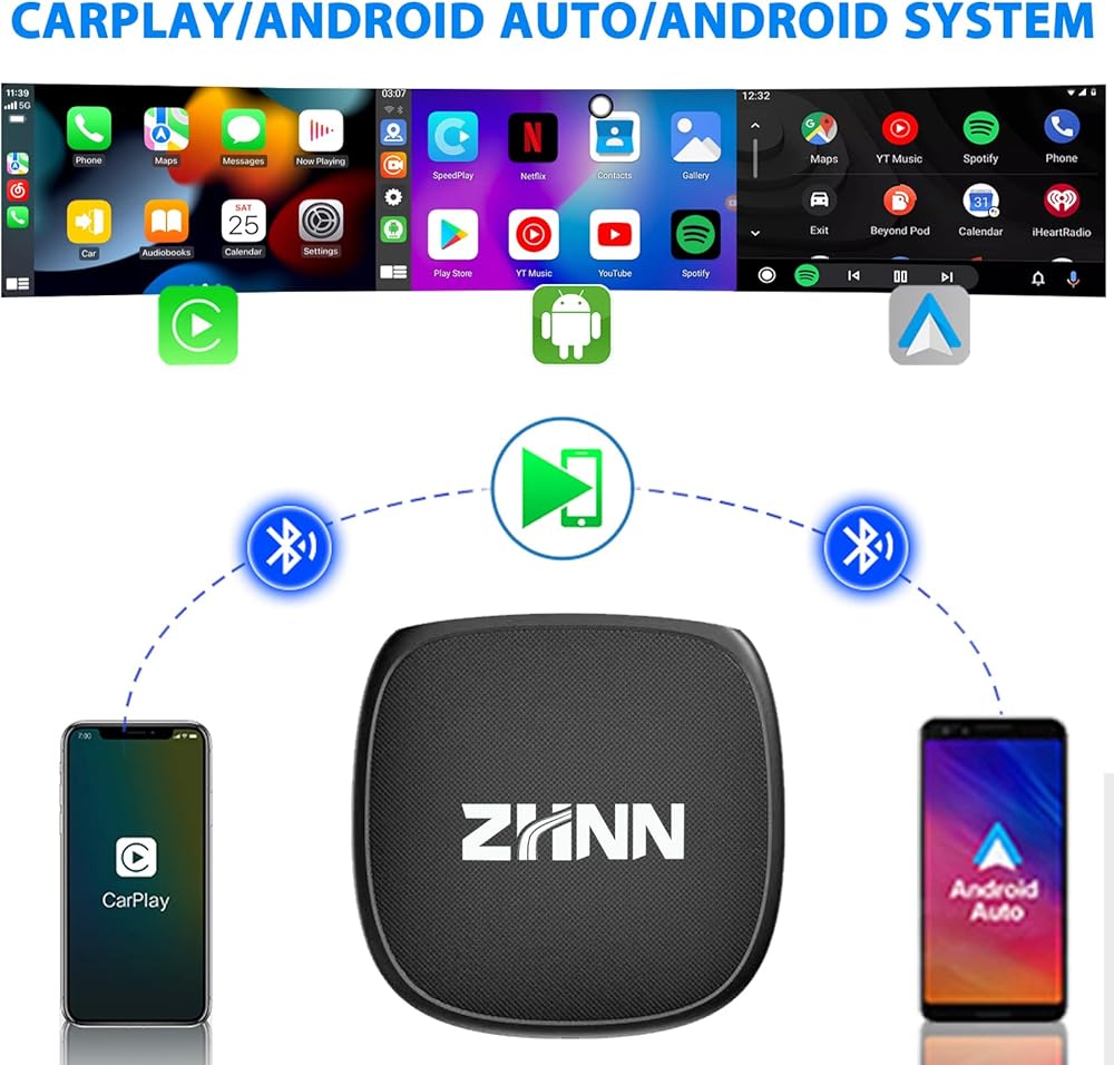 صندوق اندرويد 11 كاربلاي مع محول دونجل كاربلاي لاسلكي نتفليكس / محول تلقائي لاسلكي اندرويد 2023، احدث شريحة 2023، لسيارات المصنع، تحويل كاربلاي سلكي او اي ام الى لاسلكي من زد اتش ان ان