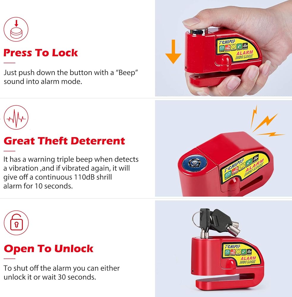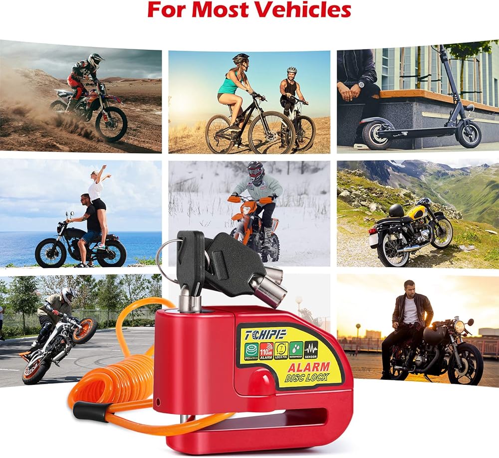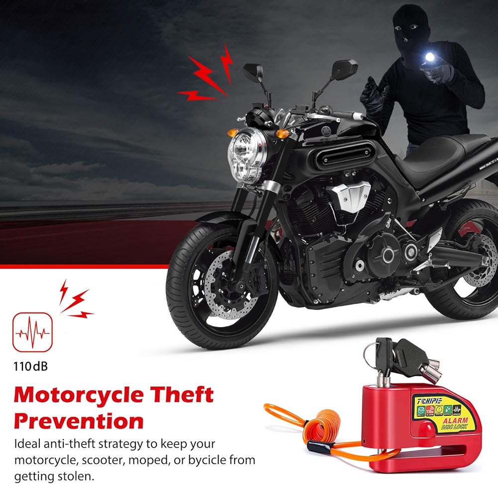 منع سرقة الدراجات النارية: مع أجهزة الاستشعار المدمجة التي تكتشف الصدمات والحركات، سيحافظ قفل قرص منع السرقة من Tchipie على دراجتك النارية آمنة ومحمية وخالية من السرقة حيث أن نظام الإنذار المسموع سوف يخيف المشتبه بهم إذا حاولوا ذلك! وفقًا لـ NCIB، تم الإبلاغ عن سرقة 44,268 دراجة نارية في العام الماضي، فقد حان الوقت لإضافة أمان إضافي لاستثمارك ومنع سرقة الدراجات النارية من الحدوث لك.