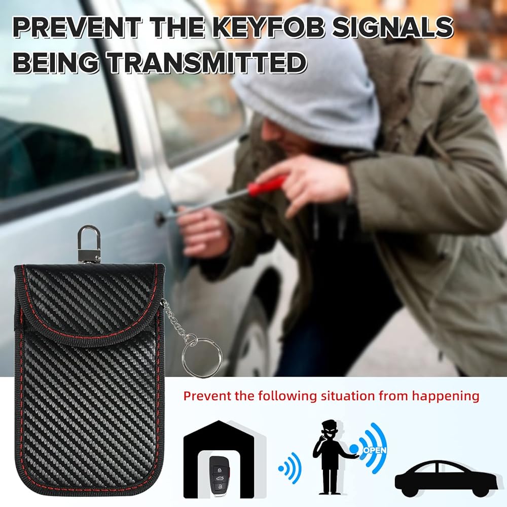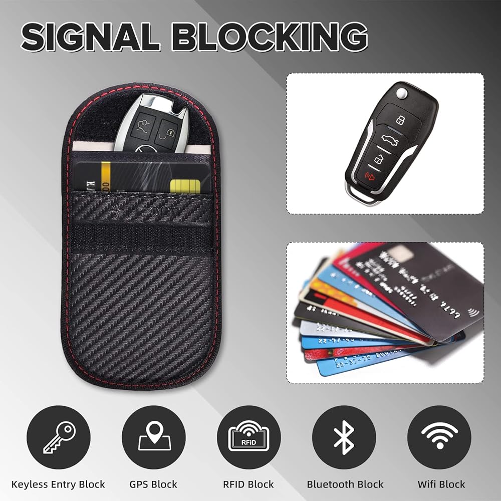 تُستخدم مفاتيح التحكم عن بعد اليوم لبدء تشغيل السيارة من خلال الإشارات، وسيتلقى العديد من المجرمين إشارات التحكم عن بعد ويسرقونها من خلال جامعي إشارات التردد اللاسلكي لسرقة سيارتك. وبالمثل، عندما يتم وضع بطاقتك في حقيبة عادية فقط، فقد يتم سرقتها.