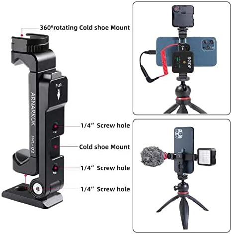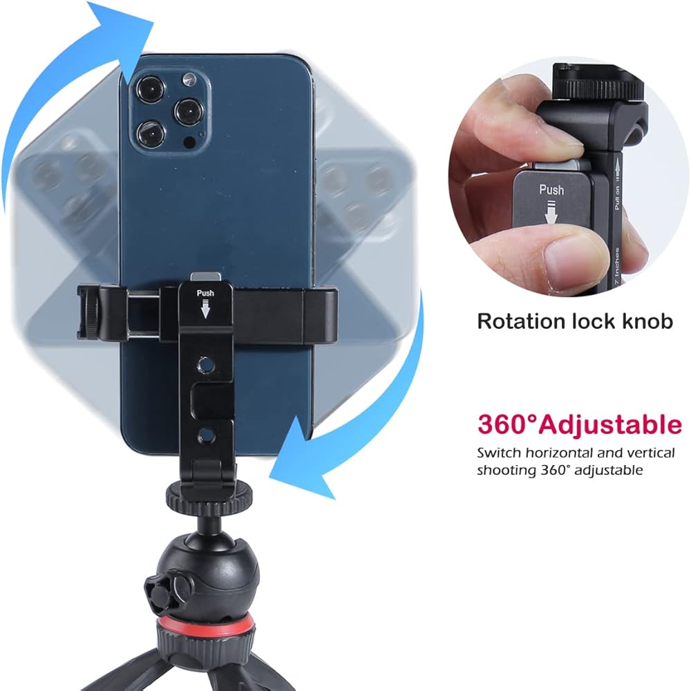 🏆【تصميم قفل فريد】: يتميز حامل الهاتف المحمول ثلاثي القوائم من ارناركوك بتصميم قفل من نوع الدفع، وتصميم قفل دوار مبتكر! يمكن تدوير حامل الهاتف المحمول، اضغط على الزر الخلفي لفتحه، ويمكن تدوير مشبك الهاتف المحمول وضبط الزاوية على 3 زوايا: رأسية وأفقية و45 درجة. حتى تتمكن من استخدامها ببساطة ودقة!
