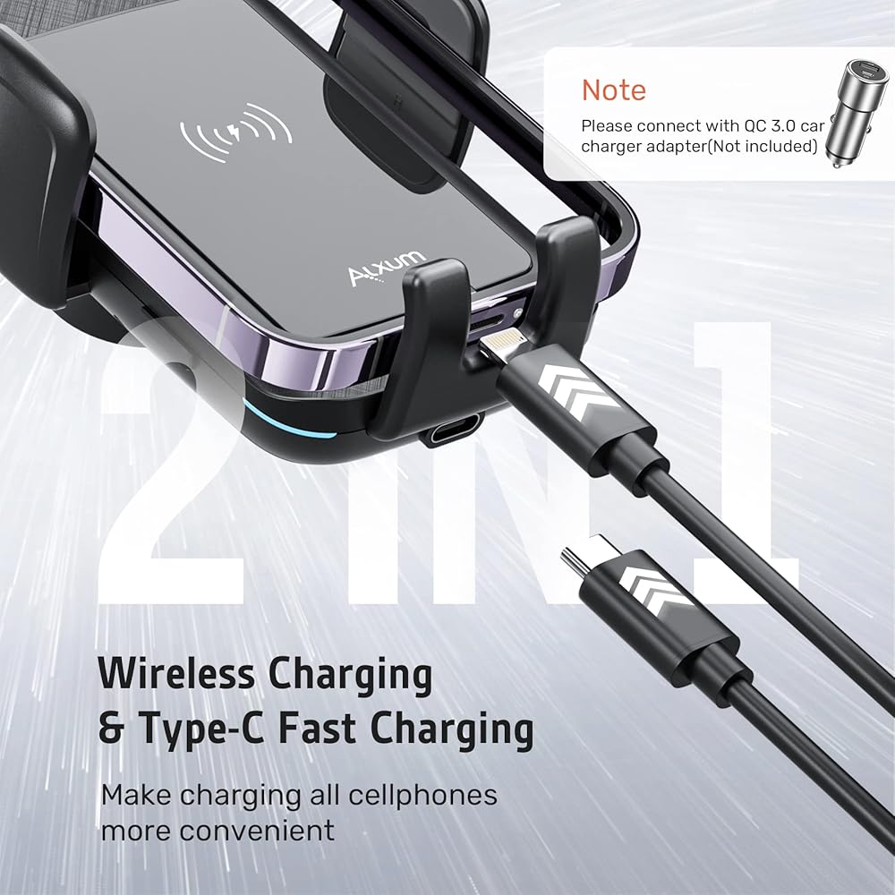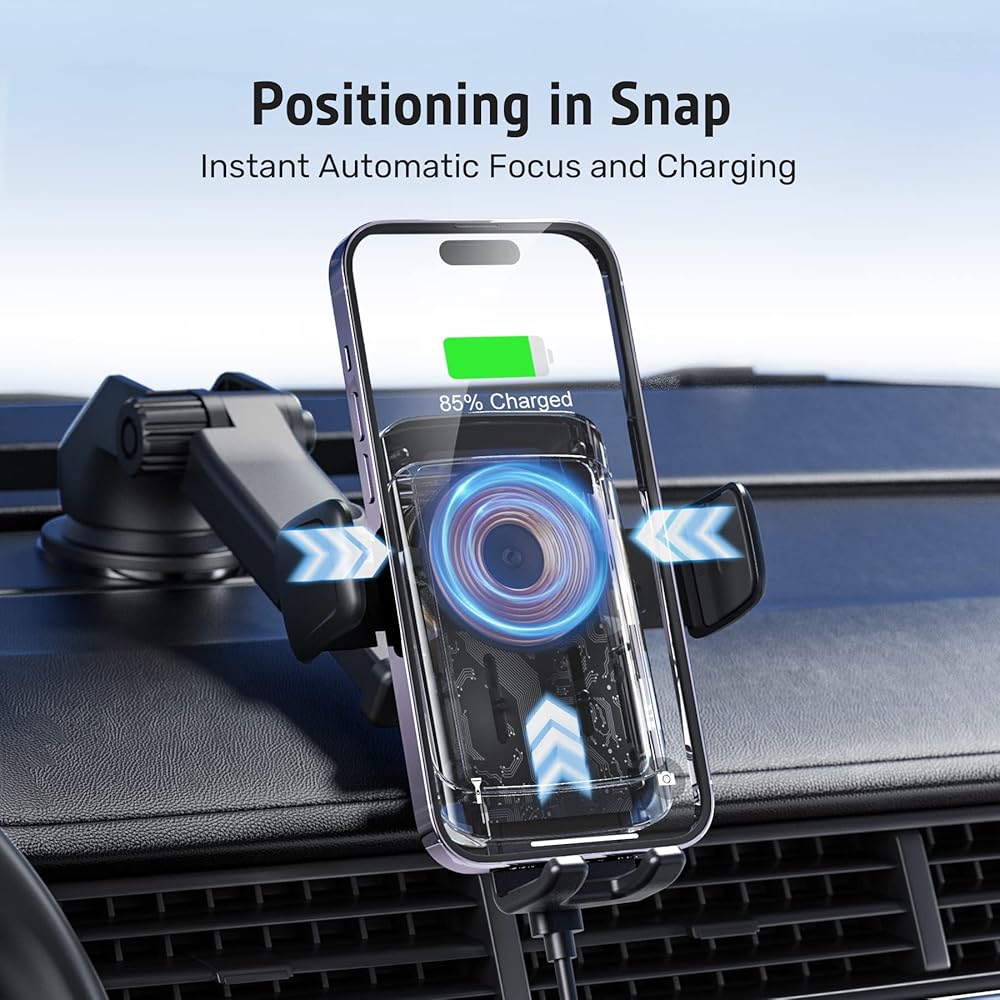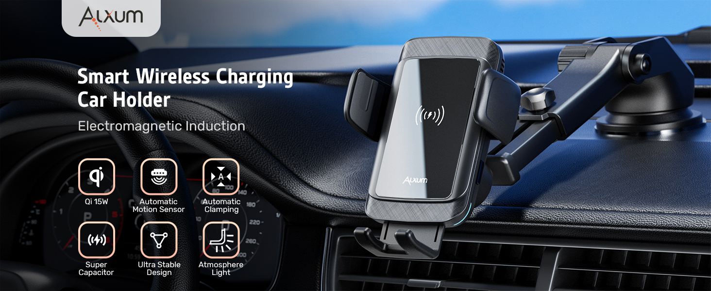 تصميم تلقائي وصديق للإنسان - هذا الشاحن اللاسلكي لحامل الهاتف للسيارة مزود بالحث الكهرومغناطيسي التلقائي، وأذرع تثبيت الفتح والإغلاق التلقائي، مما يوفر تقنية أكثر استقرارًا وأعلى لن تفتح بشكل لا يمكن السيطرة عليه. المكثف الفائق المدمج، لا يزال بإمكانه فتح أذرع التثبيت كهربائيًا عند توقف السيارة وإخراج هاتفك المحمول بسهولة.