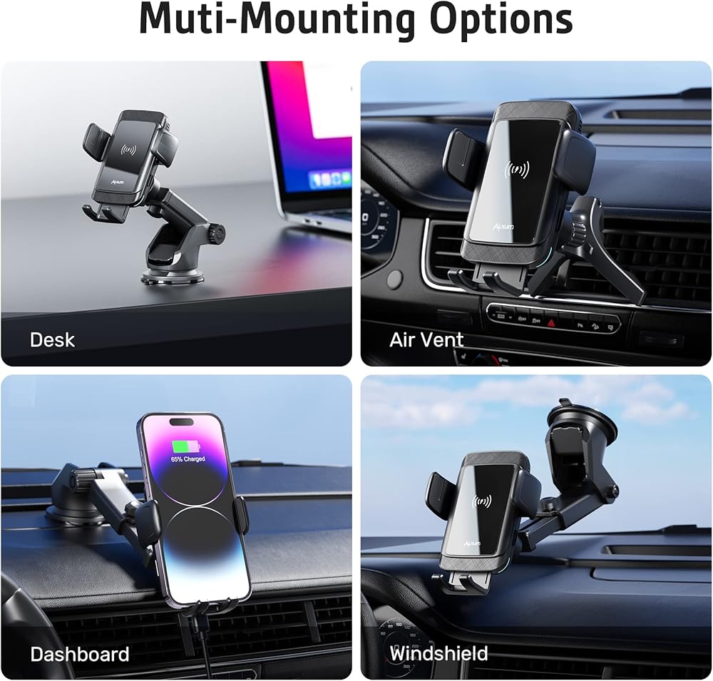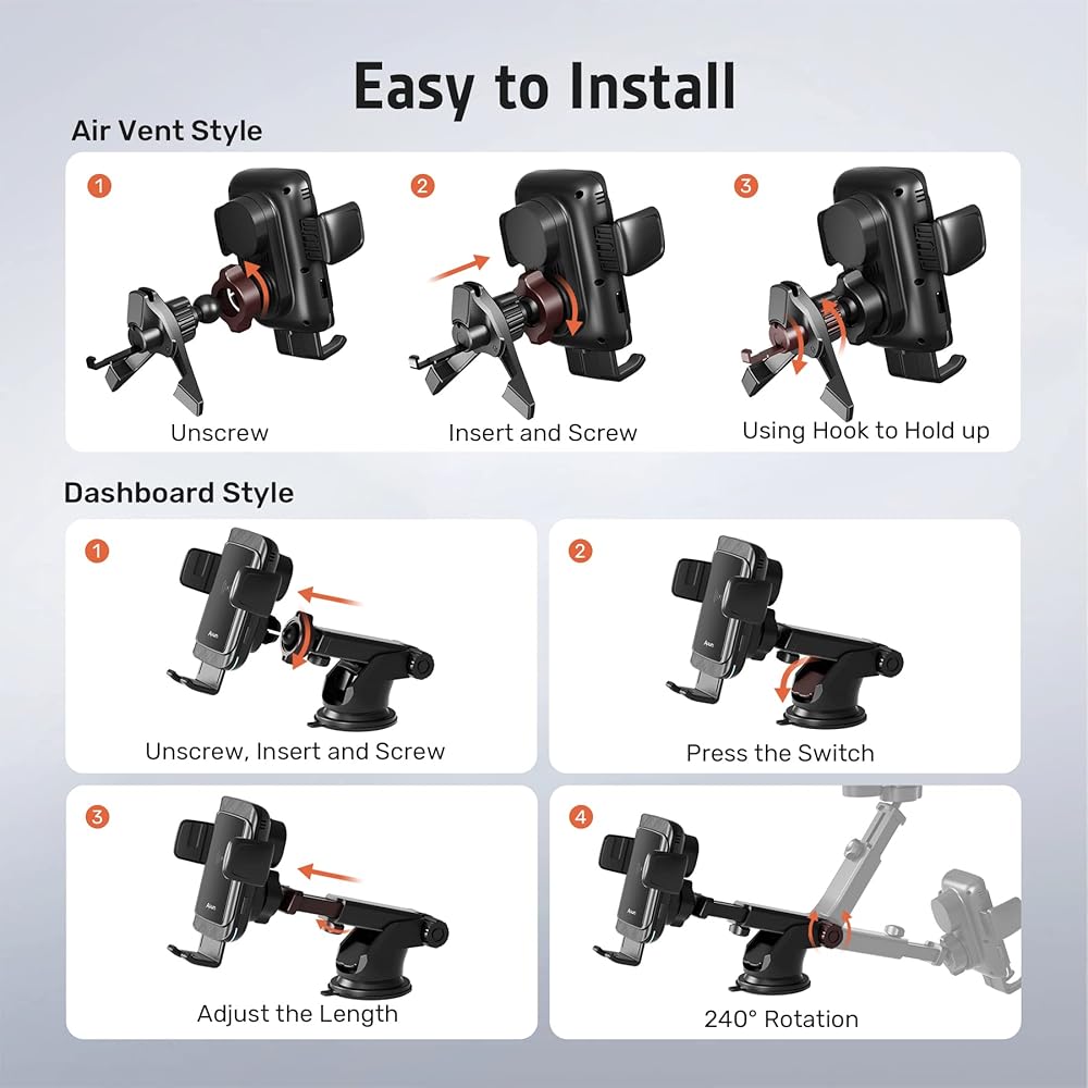 ملحقات مختلفة لتلبية الاحتياجات المختلفة - يمكن لمشبك فتحة التهوية المطور وقاعدة التثبيت بالشفط تثبيت حامل الهاتف اللاسلكي بإحكام على فتحة التهوية ولوحة القيادة والزجاج الأمامي في أي وقت لتلبية احتياجاتك المختلفة. لا مزيد من سقوط الهاتف بسهولة، لا مزيد من التسرع في القيادة.