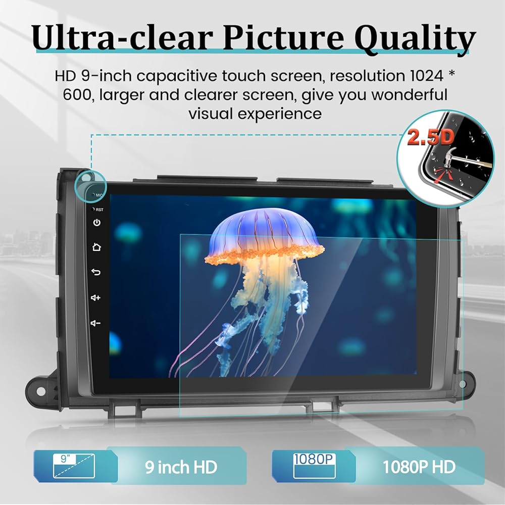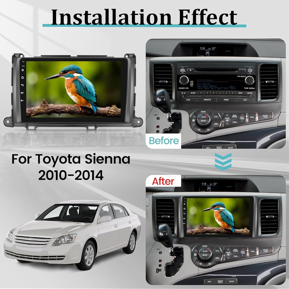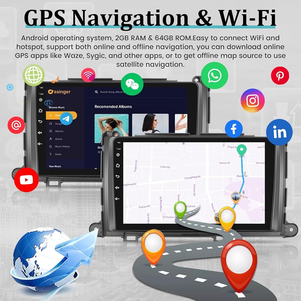 راديو سيارة 2+64G يعمل بنظام Android 13 لسيارة Toyota Sienna 2010 2011 2012 2013 2014-9 بوصة ستيريو سيارة بشاشة تعمل باللمس مع Apple CarPlay وAndriod Auto/WiFi/GPS/EQ/SWC + كاميرا الرؤية الخلفية AHD