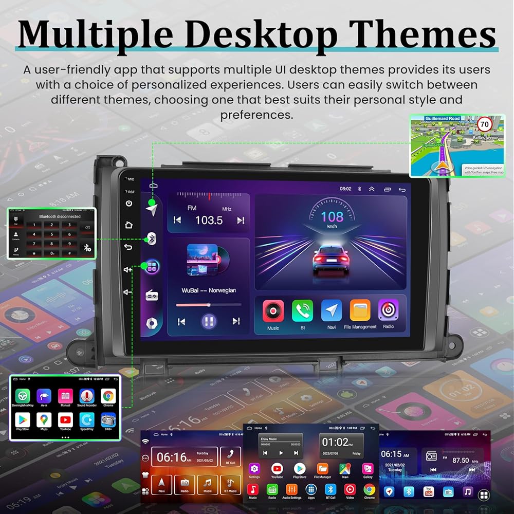 【متعدد الوظائف】- مشغل الوسائط المتعددة Toyota Sienna يدعم اتصال Wi-Fi/ IOS/Android Mirror Link / 28 سمة سطح مكتب متعددة / تشغيل فيديو عالي الدقة 1080P / شاشة مقسمة / نظام تحديد المواقع العالمي / بلوتوث (دعم دليل الهاتف، الاتصال بدون استخدام اليدين) / التحكم في عجلة القيادة / الموسيقى / راديو FM RDS / خرائط عبر الإنترنت وغير متصل / مدخل USB مزدوج / صوت EQ.