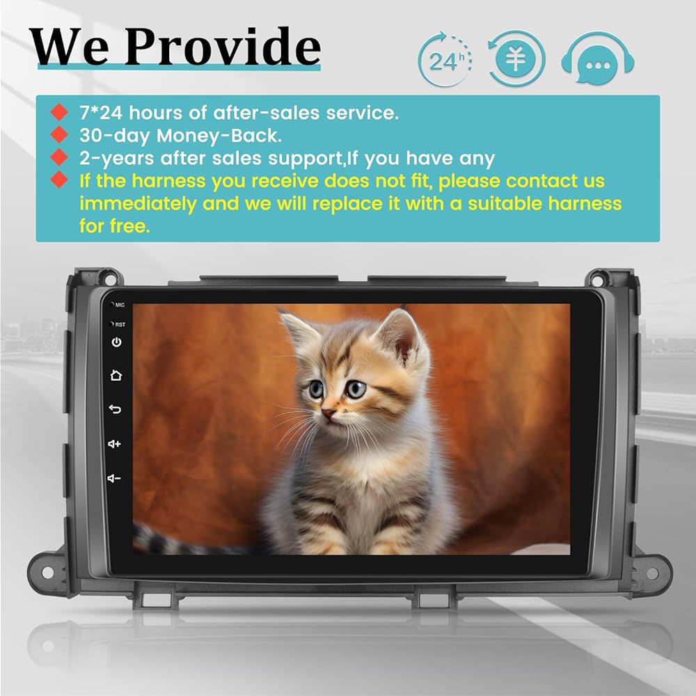 【دعم فني احترافي】- نقدم 7*24 ساعة من الدعم الفني لما بعد البيع لمساعدتك على حل مشكلات التثبيت والتشغيل. خدمة استرداد الأموال لمدة 30 يومًا، ودعم ما بعد البيع لمدة 24 شهرًا، إذا كانت لديك أي أسئلة حول راديو Android الخاص بنا لسيارة Toyota Sienna، فلا تتردد في الاتصال بنا.
