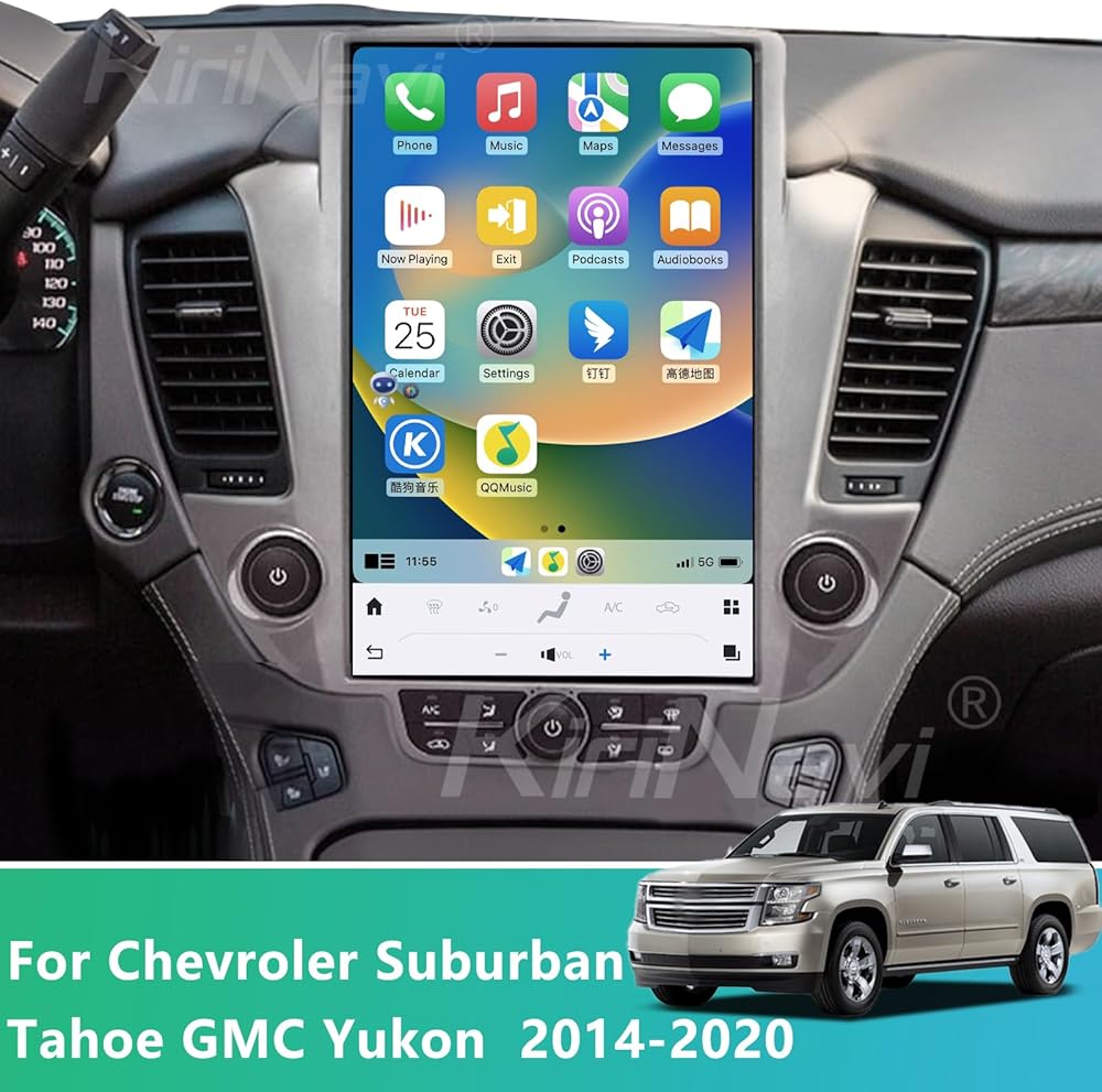 راديو سيارة كوالكوم أندرويد 11 لسيارة شيفروليه سوبربان تاهو جي إم سي يوكون 2014-2020 وحدة رأس بديلة ستيريو 14.4 بوصة IPS 2K شاشة تعمل باللمس طراز تسلا كاربلاي أندرويد ملاحة تلقائية تشغيل الوسائط المتعددة