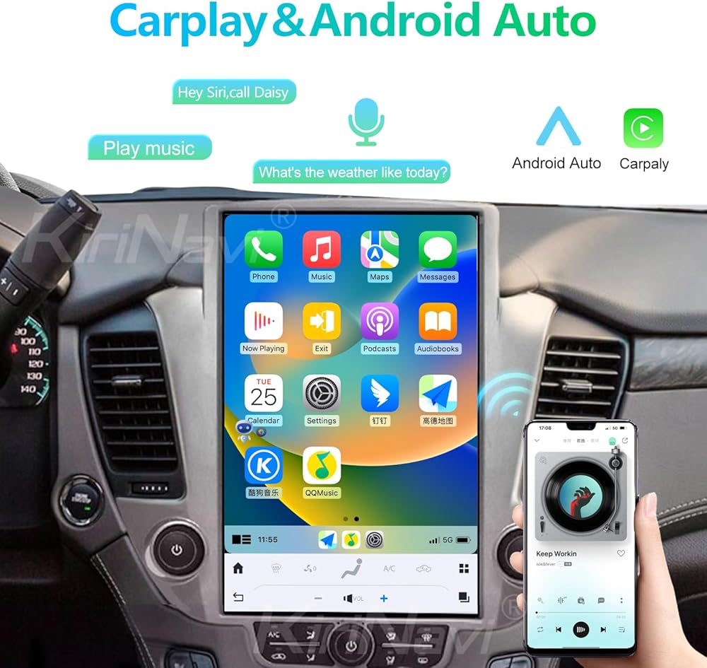 • 【Carplay وAndroid Auto مع التحكم الصوتي】 يتوافق ستيريو السيارة هذا مع Apple CarPlay وAndroid Auto، فهو يحتوي على أحدث تقنيات التحكم الصوتي، ما عليك سوى الاتصال بهاتفك الذكي الذي يتيح لك الوصول إلى التنقل في الخرائط وجهات اتصال الهاتف والبريد الإلكتروني، الإشعارات والموسيقى وغير ذلك الكثير بمساعدة Siri/Google Assistant أثناء التركيز على الطريق.