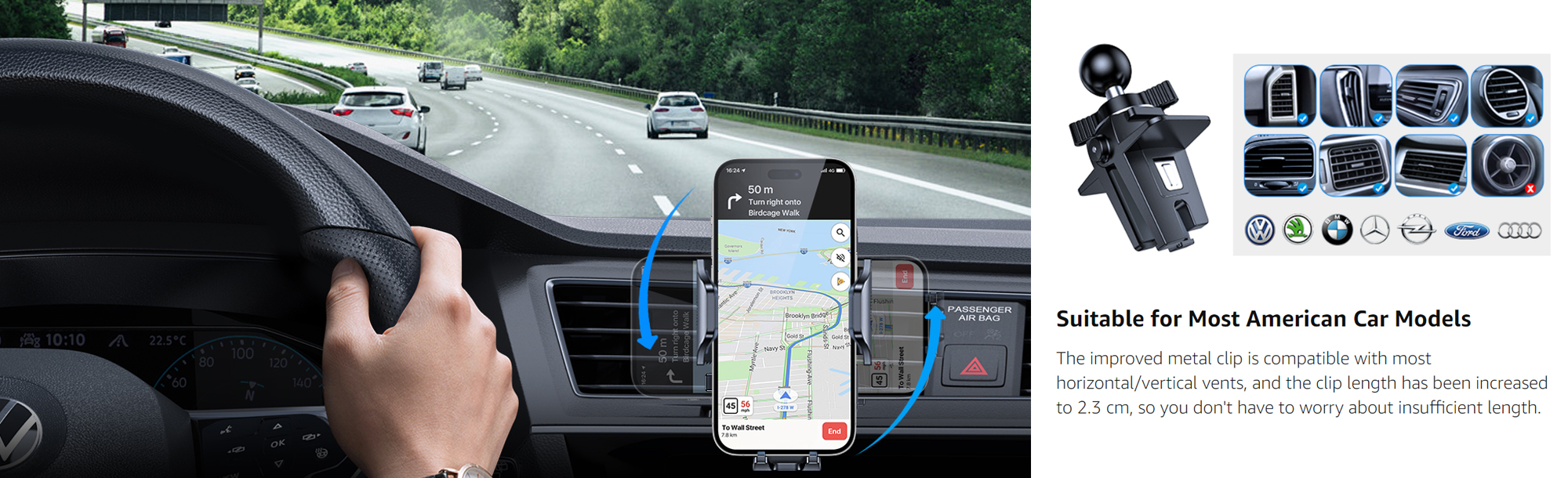 [تجربة مستخدم أفضل، رفيق الهاتف] تعمل POBOKO على تحسين كل تفاصيل حامل الهاتف الخلوي، أول تصميم مريح لبصمات الأصابع على كلا المشبكين يسمح لك بالضغط على الأذرع لتثبيت هاتفك بإحكام؛ يمكن أن يكون حامل هاتف السيارة لهاتف iPhone 14 13 12 11 Pro Max SE XR XS Max X 8Plus 7Plus، وSamsung Galaxy S21 S20 S10 S9 S8 S7 Note 20 10 9 8، وLG، وGoogle، وSony، إلخ.