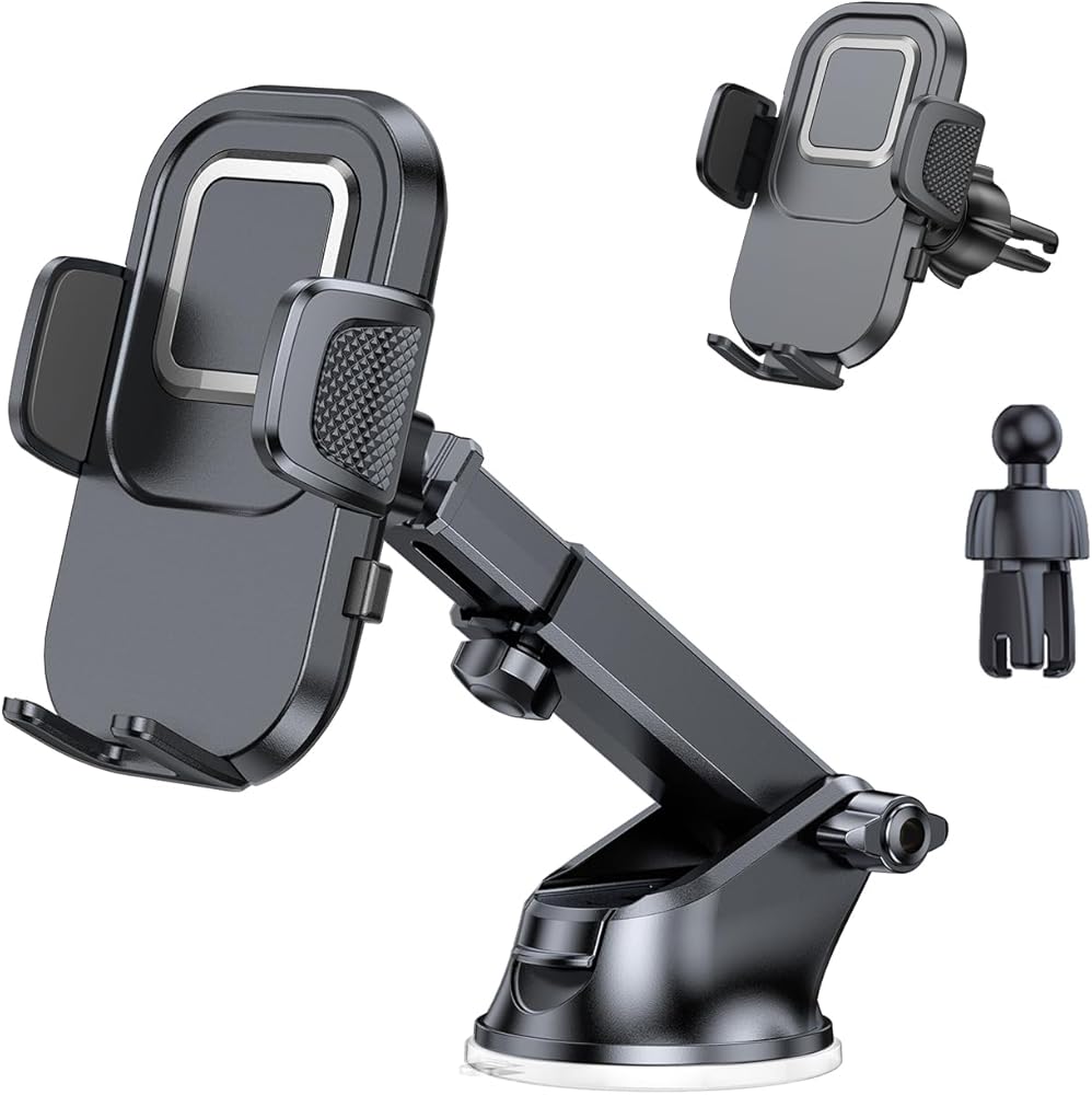 [توافق الجهاز] حاملات السيارات للهاتف الخلوي مع مطاط السيليكون المجوف السميك على أذرع المقبض تناسب الهواتف مقاس 4.0-7.1 بوصة مثل iPhone أو Android حتى مع الجرابات السميكة. من السهل ضبط القدم السفلية عن طريق سحبها للخارج لتحقيق عملية بيد واحدة