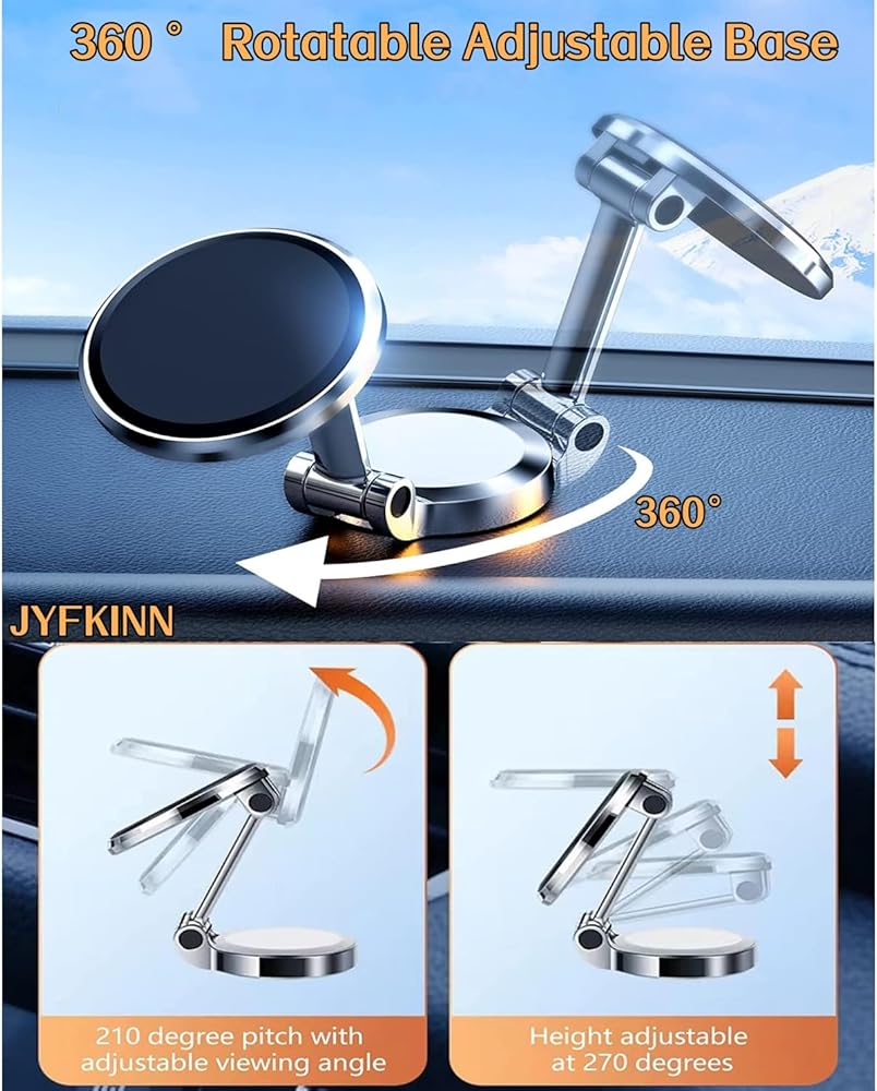 [مغناطيسي قوي] JYFKINN ترقية حامل السيارة المغناطيسي القابل للطي المدمج في مغناطيس 8*N52 وسطح اتصال أوسع، يمكن أن يخلق جاذبية قوية تدعم جهازك بقوة 4"-7" بينما يسمح لك بالقيادة دون تشتيت الانتباه.