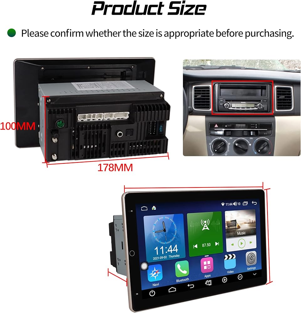 • 🚗【ملاحظة التركيب】 تم تصميم ستيريو السيارة العالمي مزدوج الدين مع مقاس عالمي قياسي 2 دين 178 × 100 ملم، كشاشة 10.1 انش. قبل شراء شاشة اللمس القابلة للدوران هذه، يرجى التحقق مرة أخرى من حجم وحدة الرأس الخاصة بنا إذا كانت تناسب وحدة التحكم المركزية لسيارتك مسبقًا. تحتاج إلى تأكيد أكثر وضوحاً، يمكنك الاتصال بنا عبر دردشة أمازون، يسعدنا مساعدتك.