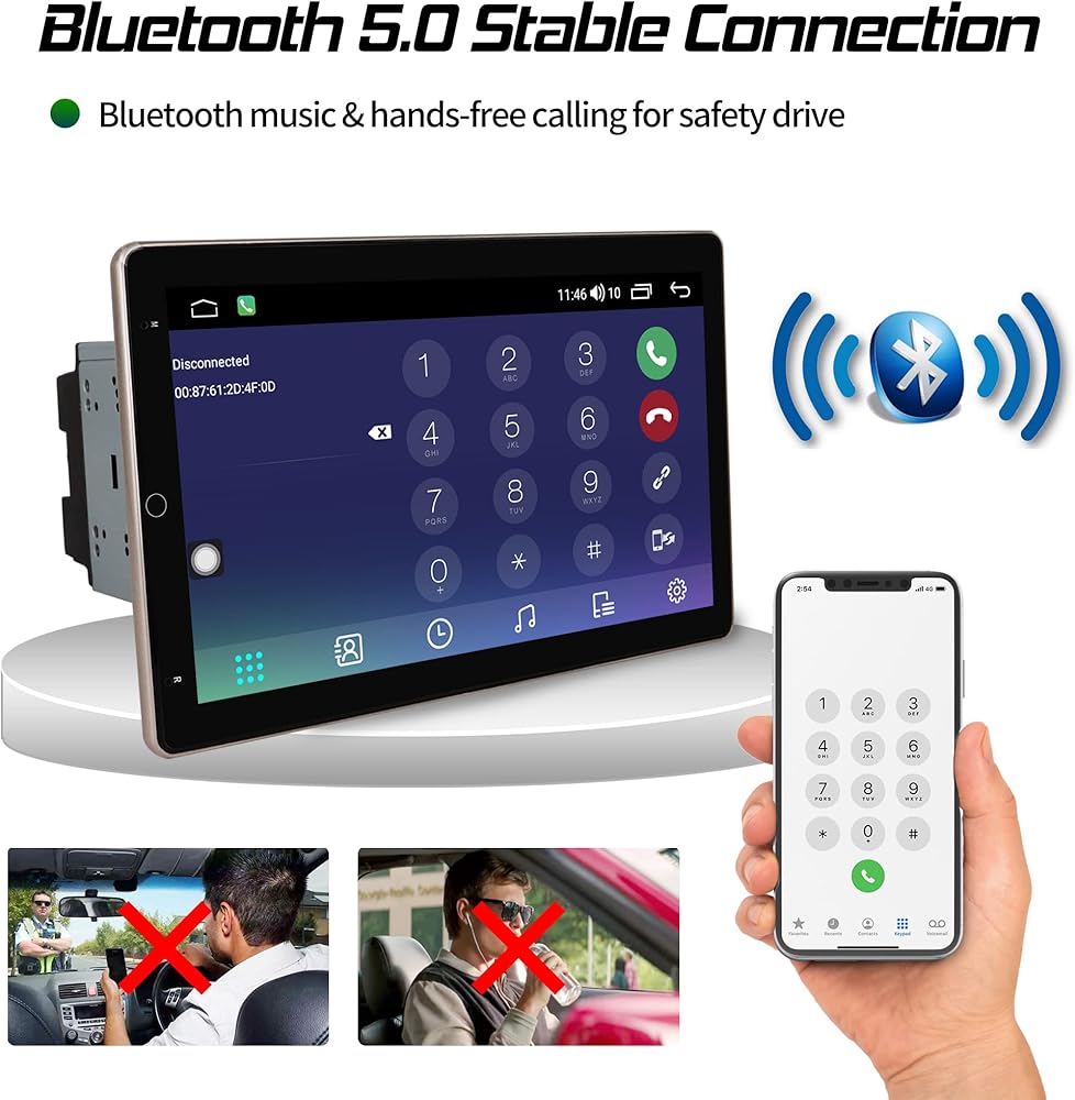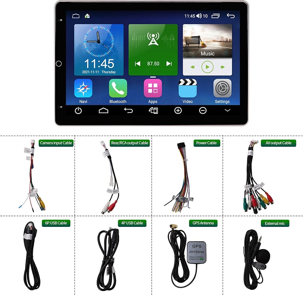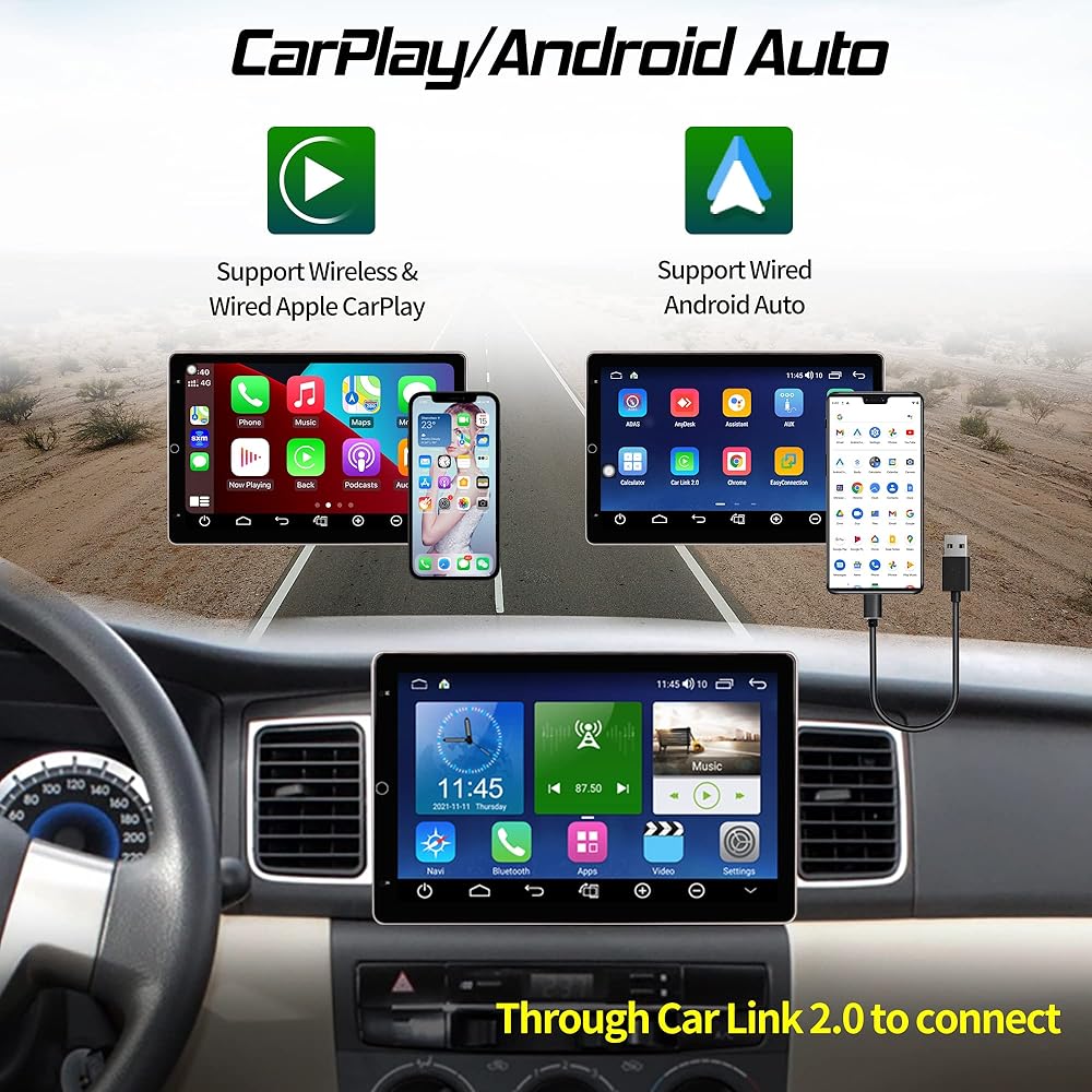 • 🚗【كاربلاي واندرويد اوتو】شاشة لمس ستيريو للسيارة مقاس 10.1 انش مزدوجة قابلة للدوران تحتوي على كاربلاي مدمج / اندرويد اوتو وتعمل مع كاربلاي اللاسلكي/السلكية ونظام اندرويد اوتو السلكي.