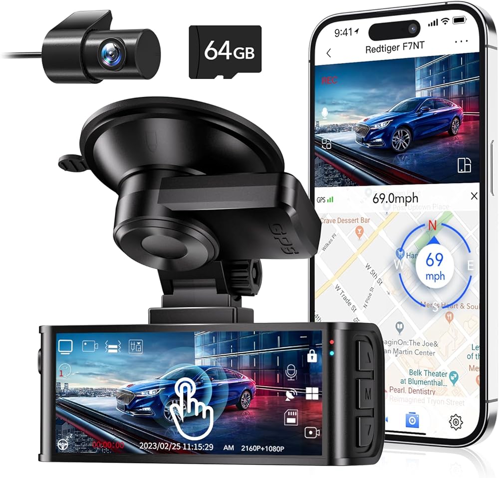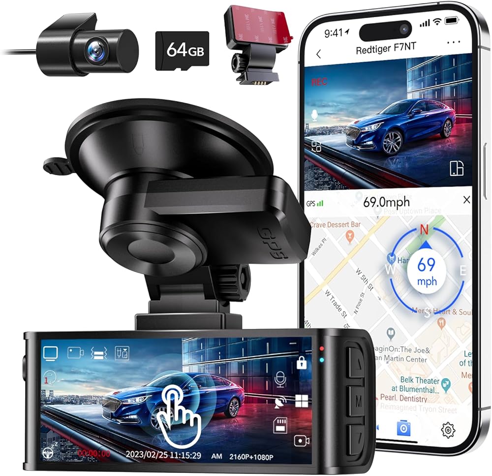 كاميرا أمامية وخلفية REDTIGER F7N Touch 4K أمامية وخلفية مع حامل 3M