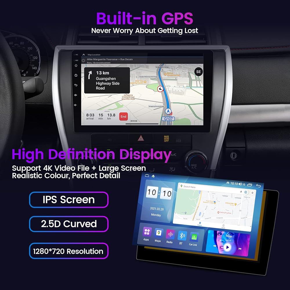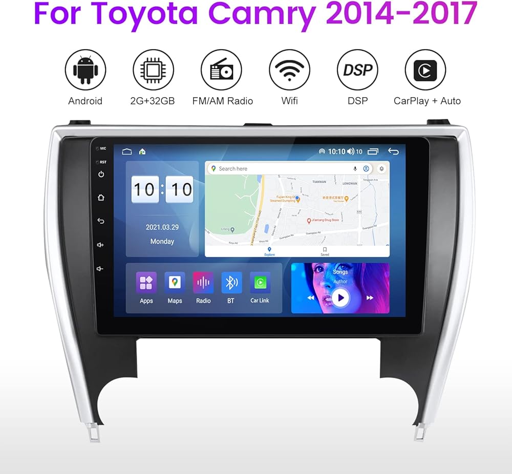 راديو ستيريو سيارة لسيارة تويوتا كامري 2015 2016 2017، شاشة لمس وحدة رئيسية اندرويد 11 مدمجة في ابل كاربلاي اندرويد اوتو DSP IPS بلوتوث نظام تحديد المواقع والملاحة 2G RAM 32G روم