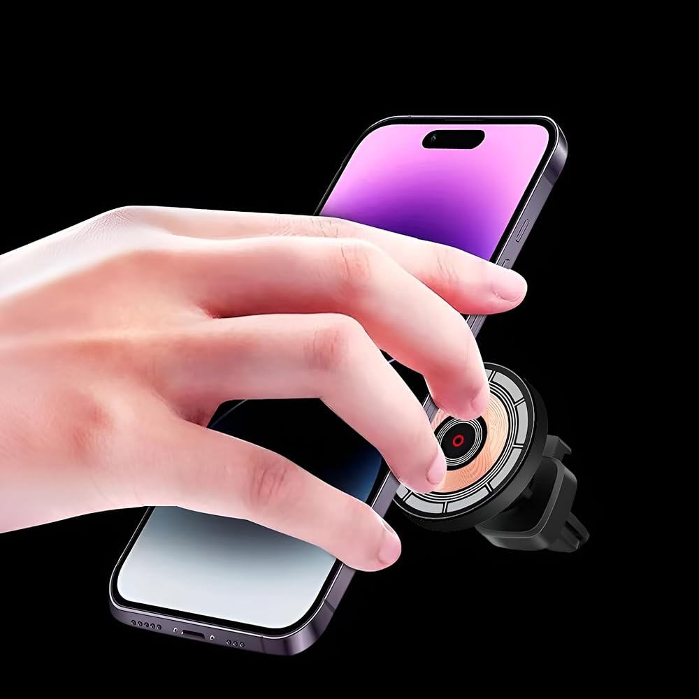 شاحن سيارة لاسلكي مغناطيسي من OFEEL متوافق مع حافظة Magsafe وiPhone 15/14/13/12 Pro Max Mini، حامل هاتف للشحن السريع بقدرة 15 وات مثبت على فتحة تهوية السيارة