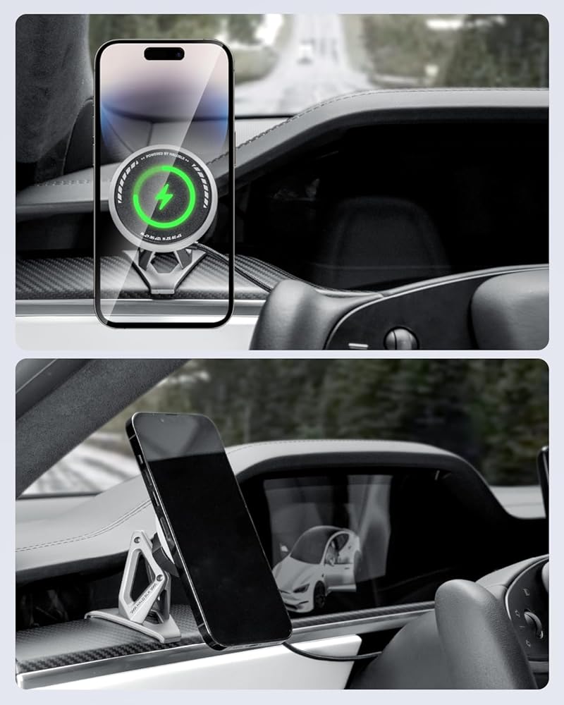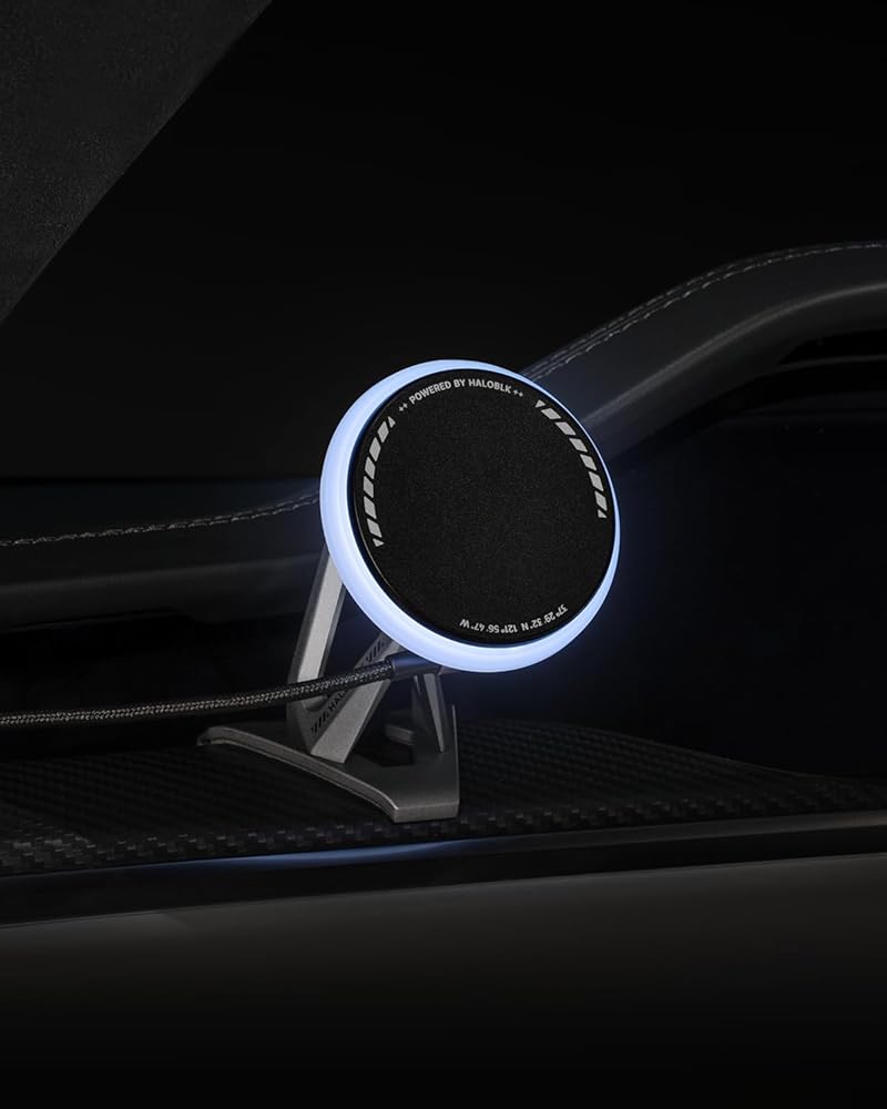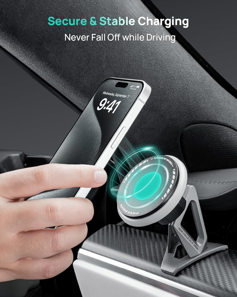 HALO BLK لشاحن تثبيت السيارة Magsafe، شاحن تثبيت الهاتف اللاسلكي السريع بقدرة 15 وات متوافق مع ملحقات 2021-2023 Tesla Model S/SP Model X/XP