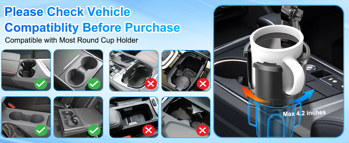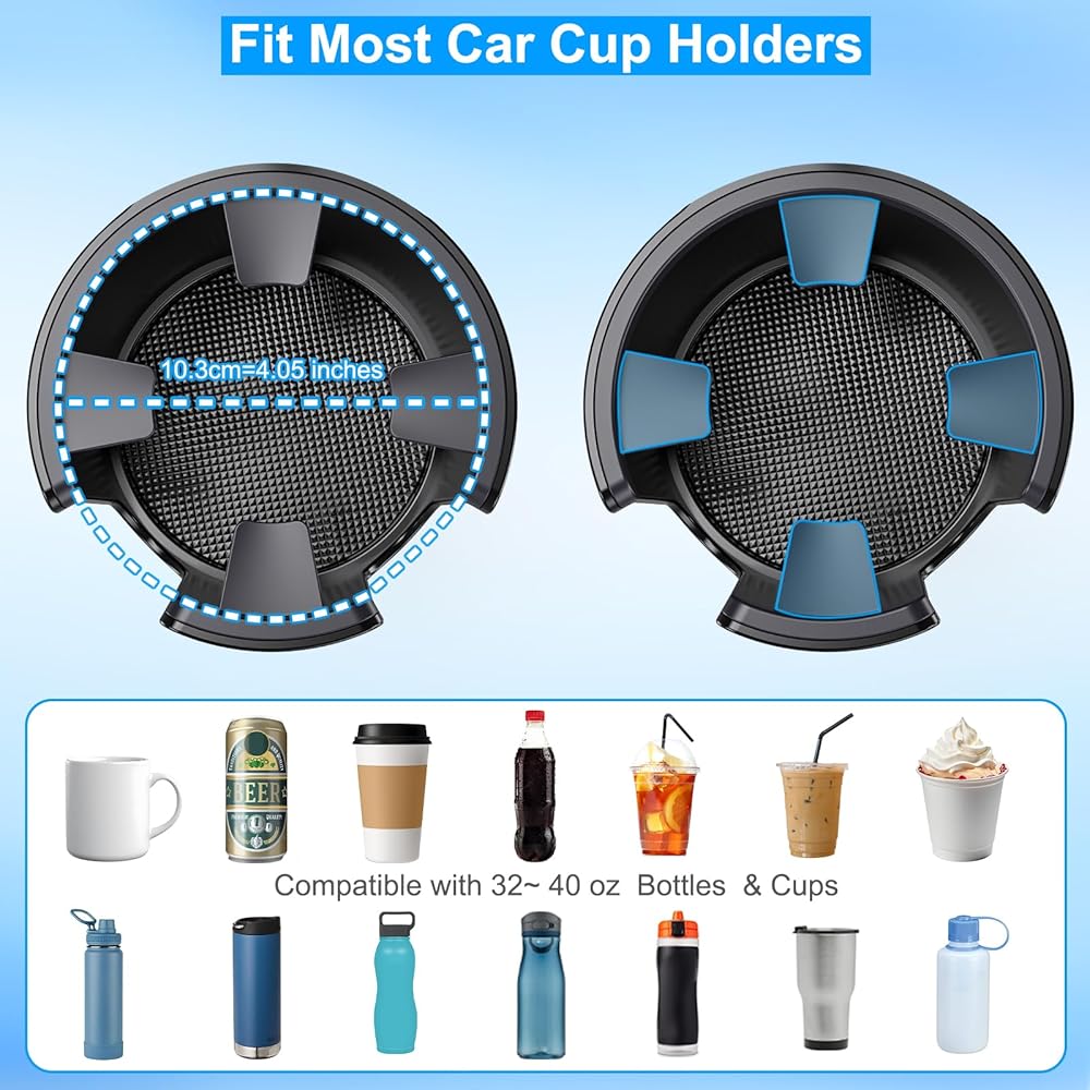 【حوامل أكواب قابلة للتوسيع أكثر توافقًا】يمكن لحامل أكواب السيارة الكبير والعميق حمل معظم العلامات التجارية للزجاجات والأكواب. تناسب زجاجة 3.4 - 3.8 انش، والتي يمكن أن تتكيف مع الزجاجات أو الأكواب ذات العلامات التجارية الشهيرة من 18 إلى 40 اونصة. تعمل بشكل رائع للسيارات وعربات الجولف والقوارب والشاحنات والآلات الرياضية.