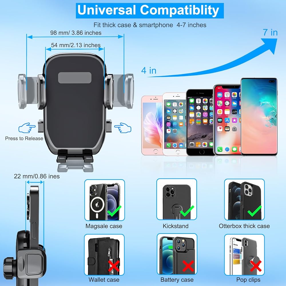 【قفل / فك سريع بلمسة واحدة】يعتمد حامل الهاتف للسيارة على أحدث آلية قفل سريعة بلمسة واحدة تسمح بالتشغيل السريع بيد واحدة. ستشعر براحة غير مسبوقة. إذا كانت لديك أي أسئلة حول حامل الأكواب هذا، فلا تتردد في الاتصال بنا.