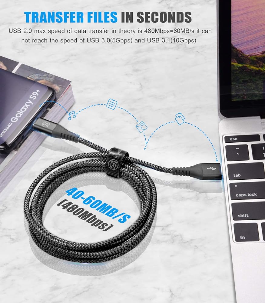 ⚡[سرعة الشحن والمزامنة السريعة المعتمدة 3.1 أمبير]: يدعم الشحن الآمن عالي السرعة حتى 3.1 أمبير ونقل البيانات بسرعة تصل إلى 480 ميجابت في الثانية. متوافق مع مواصفات USB Type C الإصدار 1.1، 56 كيلو أوم، مما يضمن شحنًا آمنًا.