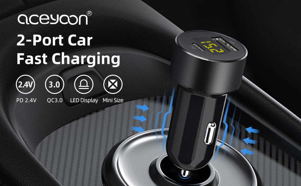 🔋 【منفذ مزدوج، شحن سريع QC3.0 】تم تصميم شاحن السيارة السريع من aceyoon مع منافذ USB وPD، مما يسمح بالشحن المتزامن لجهازين مثل الهواتف أو الأجهزة اللوحية. وهو يدعم الشحن السريع QC3.0 ويوفر خرج تيار عالي يبلغ 3.1 أمبير.