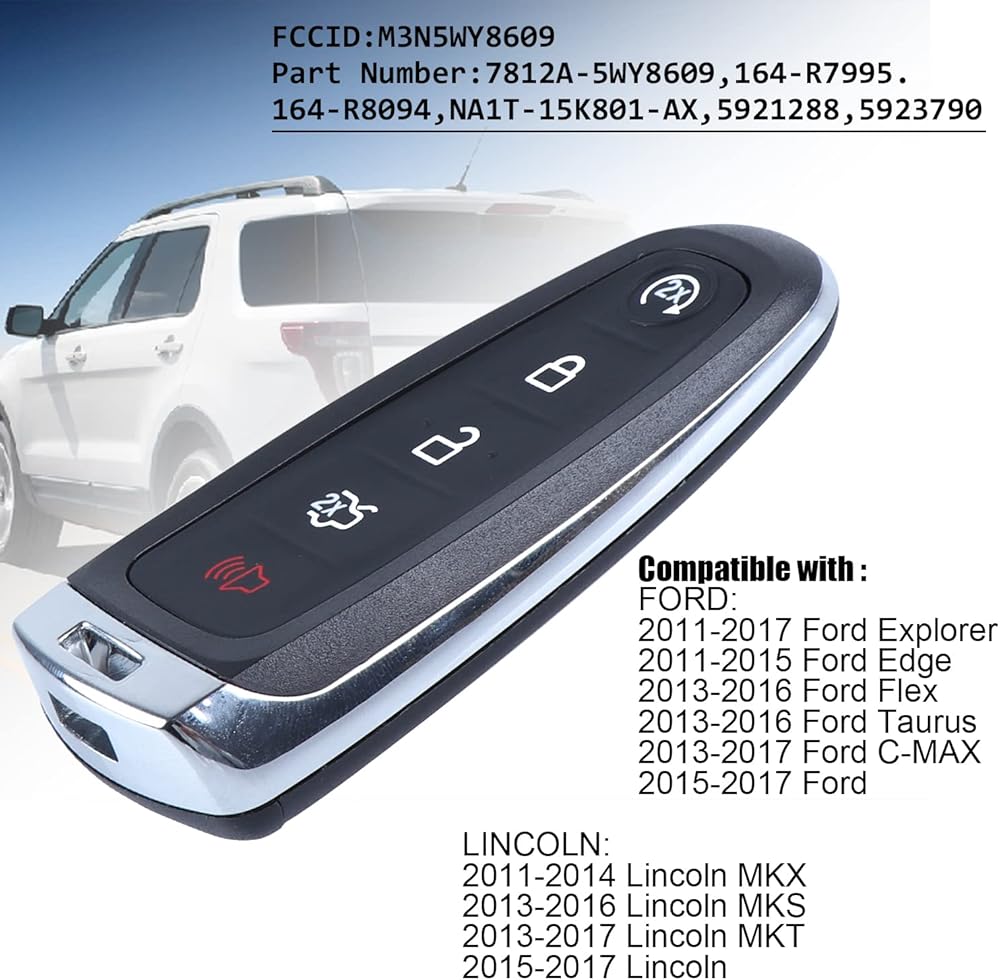 جهاز تحكم عن بعد ذكي للدخول بدون مفتاح مناسب لسيارة فورد ايدج اكسبلورر 2011-2015، فليكس فوكس توروس 2013-2019 ولينكولن MKX MKS MKT بديل P/N: M3N5WY8609 ID46 315Mhz، قطعة واحدة