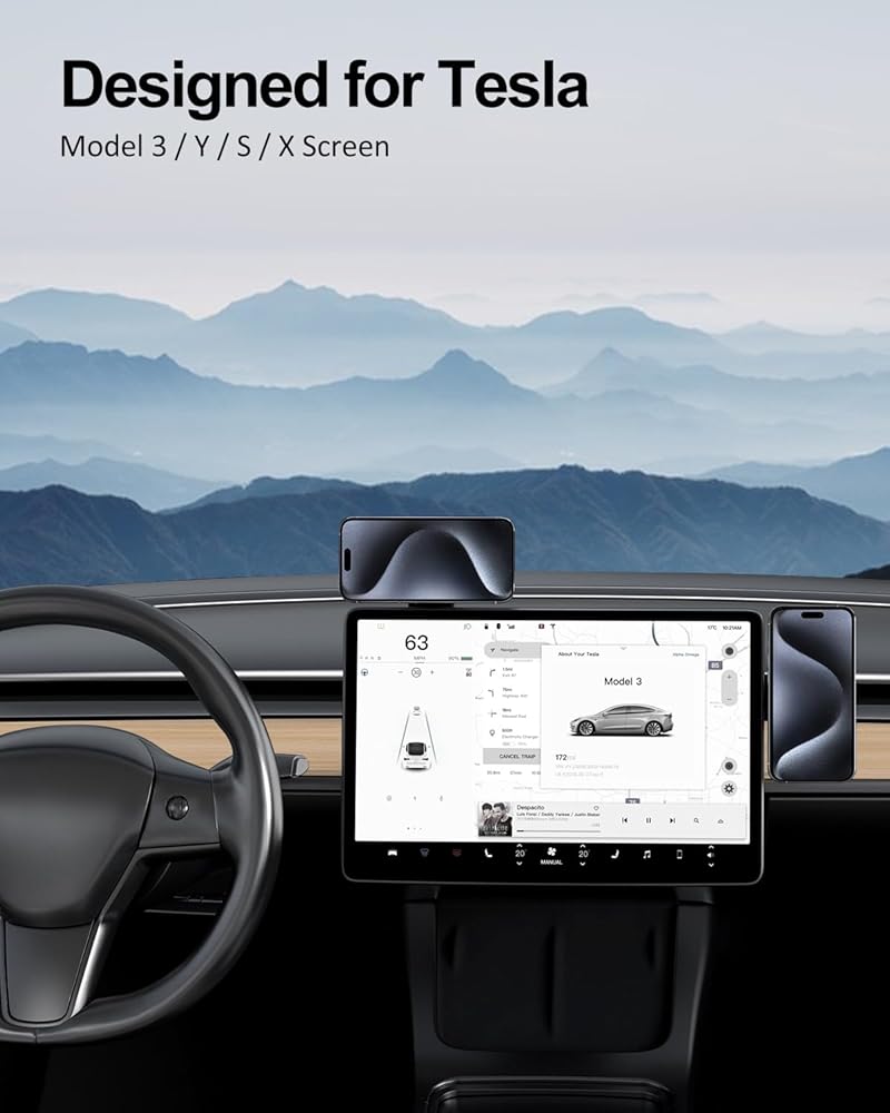 ZKJAYOE لحامل هاتف السيارة MagSafe، حامل هاتف مغناطيسي عالمي لطراز Tesla 3 Y X S، الكمبيوتر المحمول، جميع الشاشات، ملحقات Tesla Model 3 Y، يناسب جميع هواتف iPhone 15 Pro Max 14 13 12 Samsung