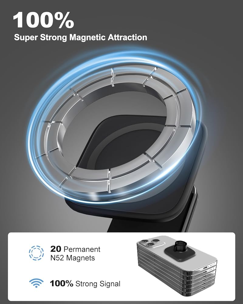 اتصال آمن ومستقر للغاية: يتميز حامل السيارة ZKJAYOE MagSafe باتصال فائق الثبات باستخدام شريط 3M لا يترك علامات ومشبك ربط وحلقة. يحتوي على 20 مغناطيسًا دائمًا N52 مطورًا، وهو يحمل هاتفك بأمان أثناء ظروف الطريق المعقدة. [ملاحظة] للحصول على التصاق مثالي، نوصي بالانتظار لمدة يوم واحد بعد وضع شريط 3M قبل ربط حامل السيارة.