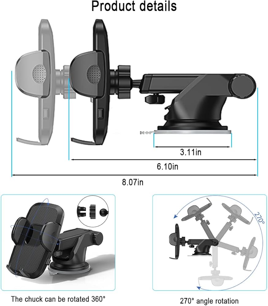 [تصميم خاص] تصميم ذراع تلسكوبي قابل للدوران 360 درجة يسمح لك باستخدام هاتفك عموديًا وأفقيًا، والتكيف مع أفضل زاوية وطول هو الأكثر ملاءمة لك لاستخدام خريطة GPS، وتبديل الموسيقى، وعرض الرسائل والمزيد، حرر هاتفك يد أثناء القيادة، مما يوفر لك تجربة قيادة أفضل وأكثر أمانًا. إيلاء المزيد من الاهتمام للقيادة وحالة الطريق، وزيادة السلامة!