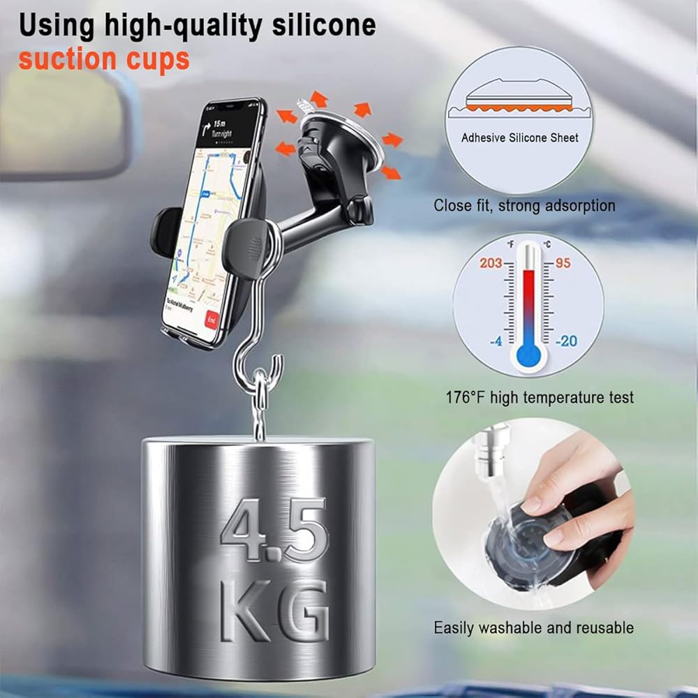 [جودة موثوقة] مصنوعة من مادة بلاستيك أكريلونتريل بوتادين ستايرين عالية الجودة، وهي متينة وصديقة للبيئة ومتانة معززة. 4 وسادات مطاطية في كل زاوية من حامل الهاتف، تحمي أجهزتك بشكل فعال من التآكل والخدش. كوب الشفط المطور قابل لإعادة الاستخدام، ويمكنه أيضًا تحمل درجة حرارة عالية، وسهل الإزالة دون ترك أي بقايا على السطح، حتى في الطقس القاسي. يمكن أن تبقى أجهزتك ثابتة في مكانها أثناء القيادة بسرعة عالية، والكبح المفاجئ، والقيادة على الطرق الوعرة والمزيد من المواقف.