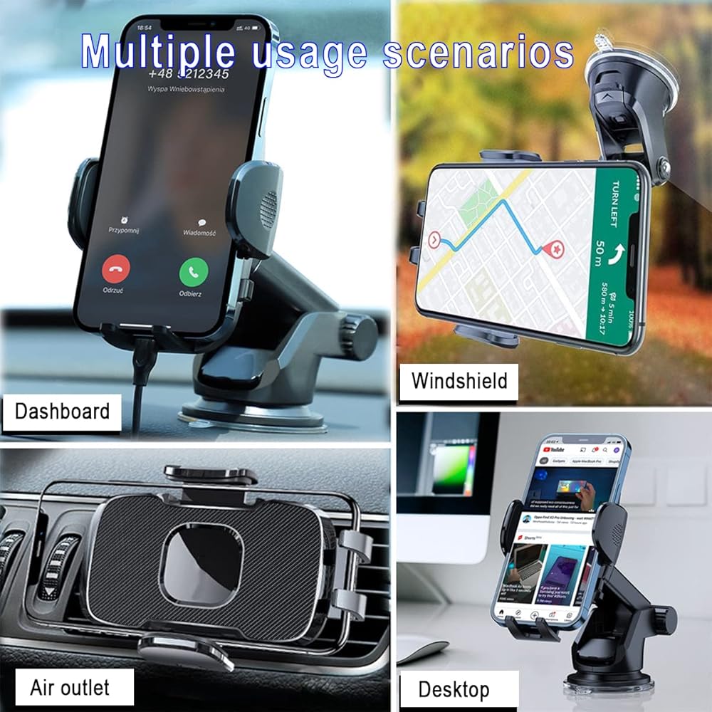 [حاملات هواتف عالمية 3 في 1] 3 طرق تركيب لتختار منها لاستخدام أفضل في الحياة اليومية! عملي جدا! مثالي للتركيب على درع السيارة ولوحة القيادة وفتحة التهوية، وجميع المواد المطلوبة متضمنة في العبوة، ولا تحتاج إلى أي أدوات خاصة للتثبيت أو تغيير الطريقة. طرق التثبيت مدرجة في الوصف كما ترون!